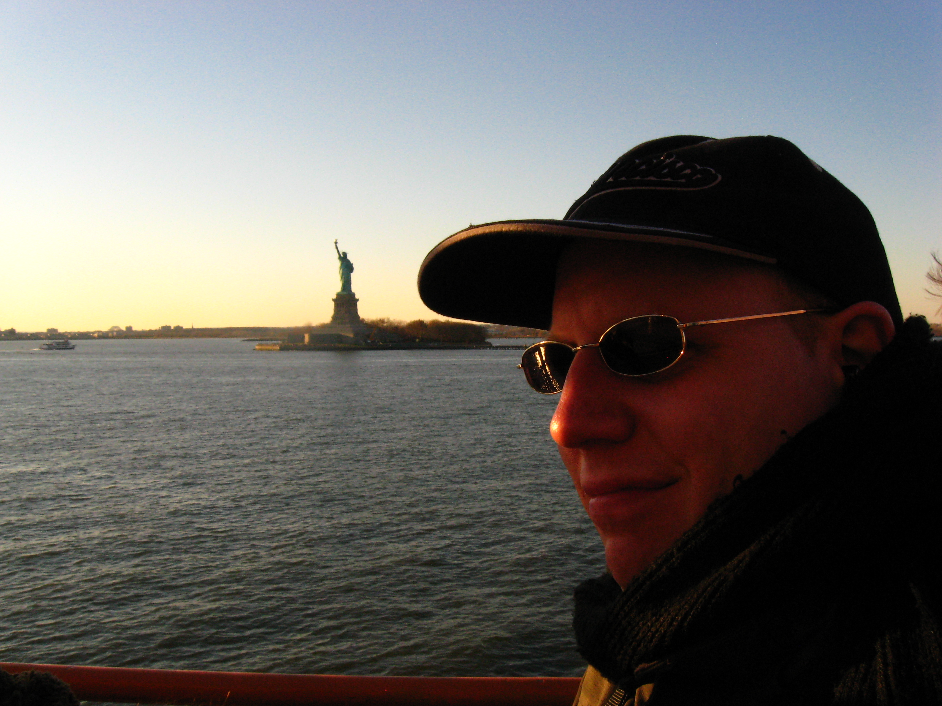 Angekommen auf Staten Island hatte ich eigentlich kein besonderes Ziel. Im Prinzip war der Weg das Ziel, ich fahre einfach gerne mal mit so einem Boot, und außerdem wollte ich halt die Freiheitsstatue knipsen. Ich passierte erstmal ein Busterminal mit sehr vielen, wartenden Bussen. Staten Island ist ziemlich groß, neben mehreren Buslinien gibt es sogar eine U-Bahn-Linie. Ich ging zur Wasserseite, wo mich ein Pärchen aus Israel (ich habe erst „Island“ verstanden) mich bat, ein Foto von ihnen vor dem Panorama Lower Manhattans zu machen. Anschließend machte er ein paar Fotos von mir.