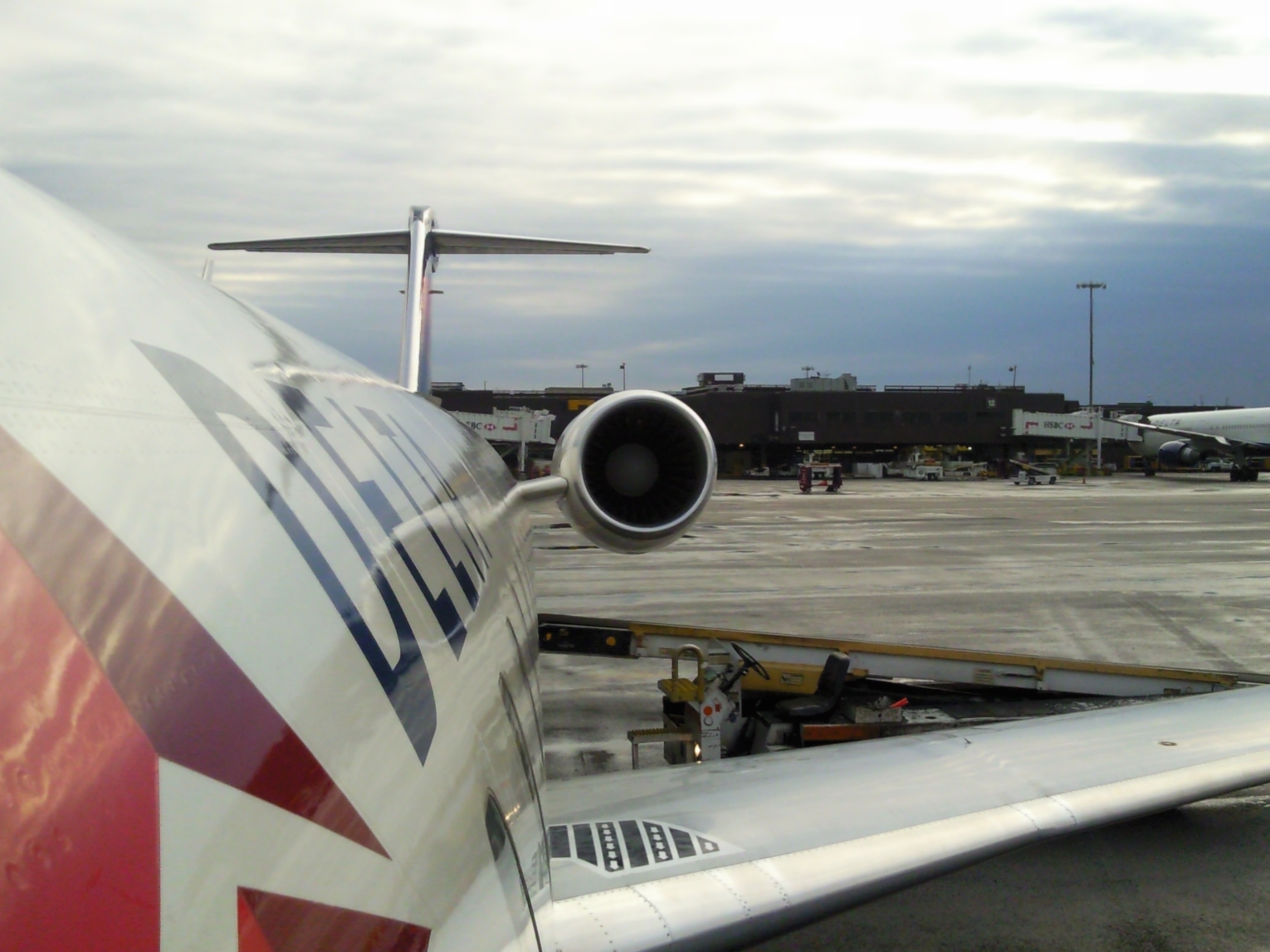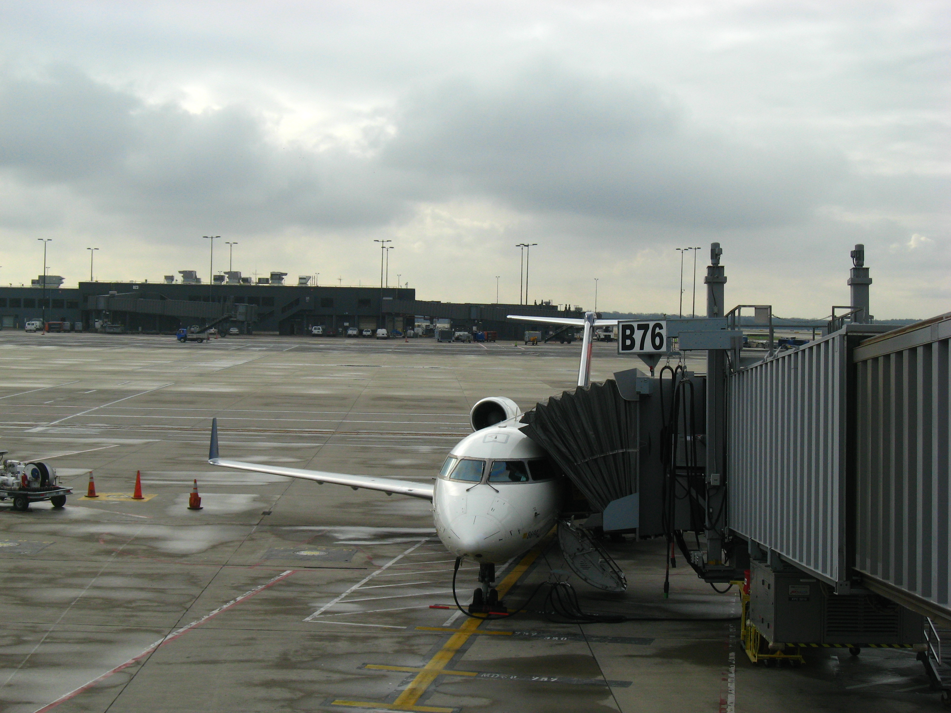 Es ging dann runter zum Flieger, ein kurzes Stück über das Rollfeld und rein den Vogel. Die Canadair Bombardier CRJ200 ist der kleinste Jet, mit dem ich bisher geflogen bin, hat gerade mal 50 Plätze. Hab mich übrigens vertan, dachte bisher immer, ich flöge mit einer brasilianischen Embraer. Der Flug war aber ruhig und kurz. Ich hab ein bisschen gelesen.