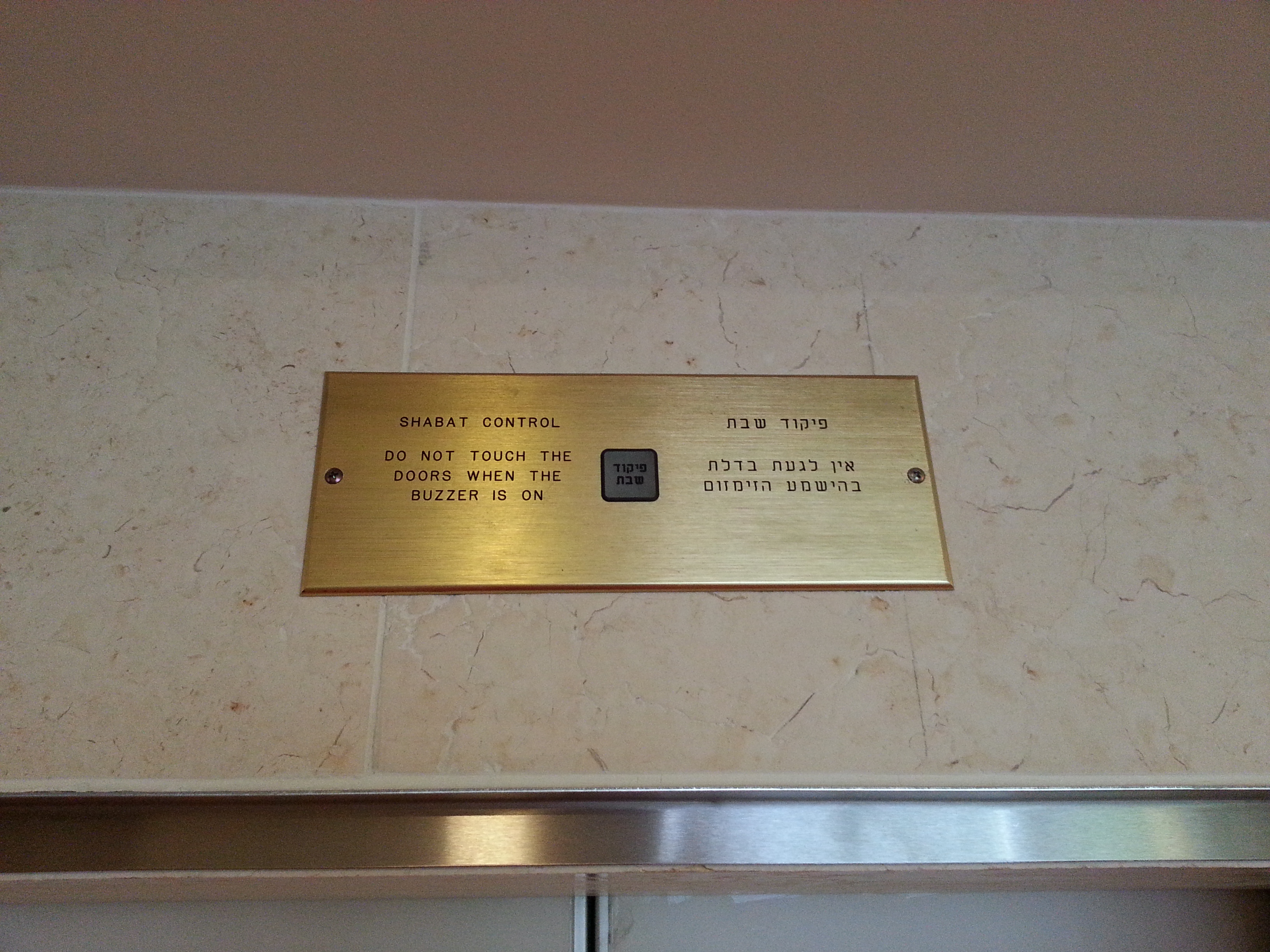 … also ein Aufzug, der funktioniert, ohne dass Knöpfe gedrückt werden. Das Schließen von elektrischen Kreisen ist ein Verstoß gegen Sabbatgesetze.