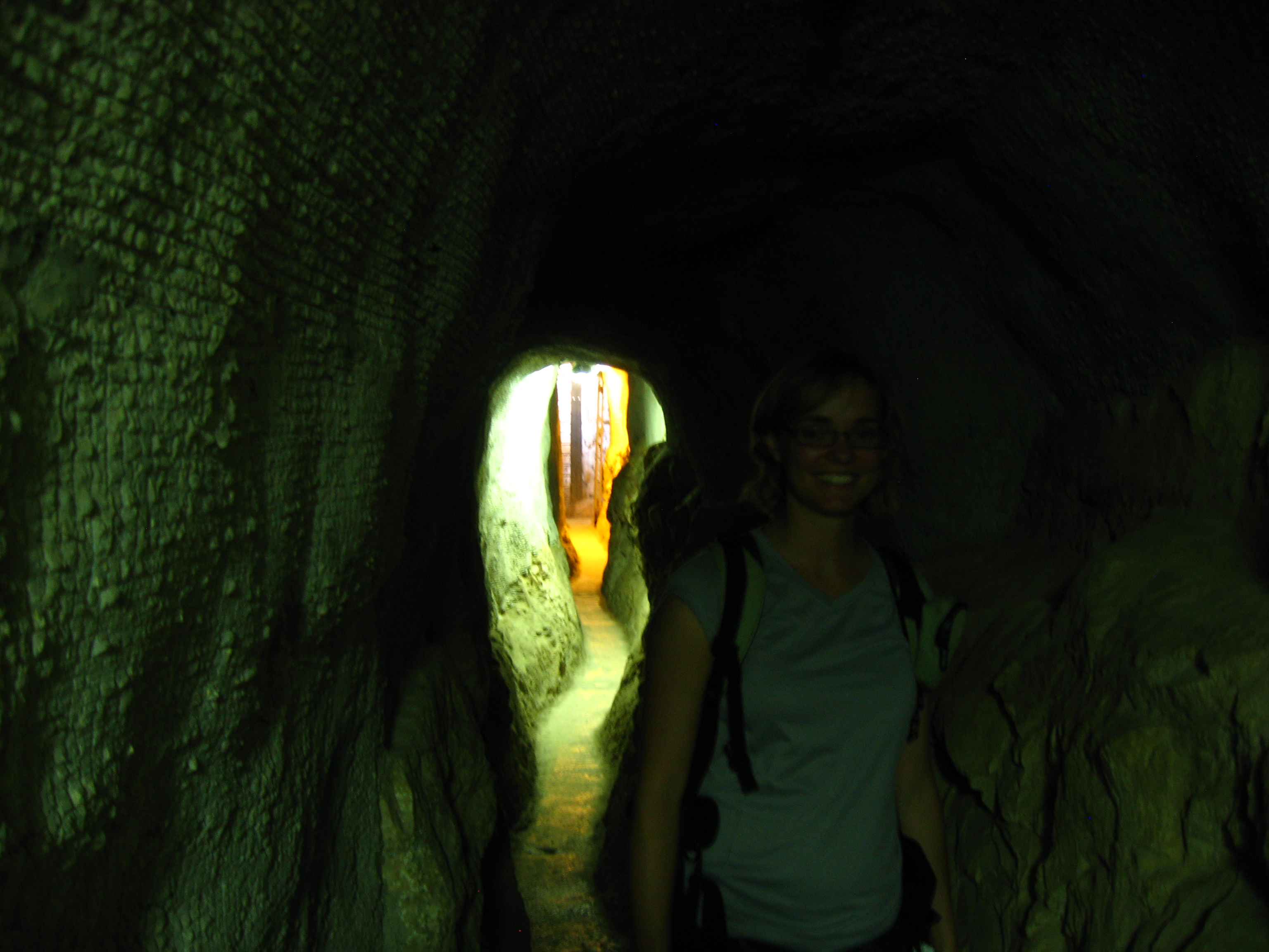 Es gab zwei verschiedene Routen, für die eine hätte man wasserdichte Schuhe und Taschenlampen benötigt. Ich fand es schade, dass wir diese Route deswegen nicht nehmen konnten, das schien mir echt spannend. Wir haben uns den Eingang angesehen, das ist eine echt dunkle, enge und lange Route, in der auf dem Boden Wasser fließt. Nichts für Angsthasen (oder Leute ohne Gummistiefel und Taschenlampen). Das wäre schon eine Sache mit Nervenkitzel gewesen, denke ich. Die andere Route war auch interessant, aber erheblich kürzer. Auf jeden Fall muss man den Hut vor den Arbeitern ziehen, die sich vor so langer Zeit zu kanaanäischen Zeit mit Bronze-, später mit Eisenwerkzeugen durch den Fels gegraben haben.