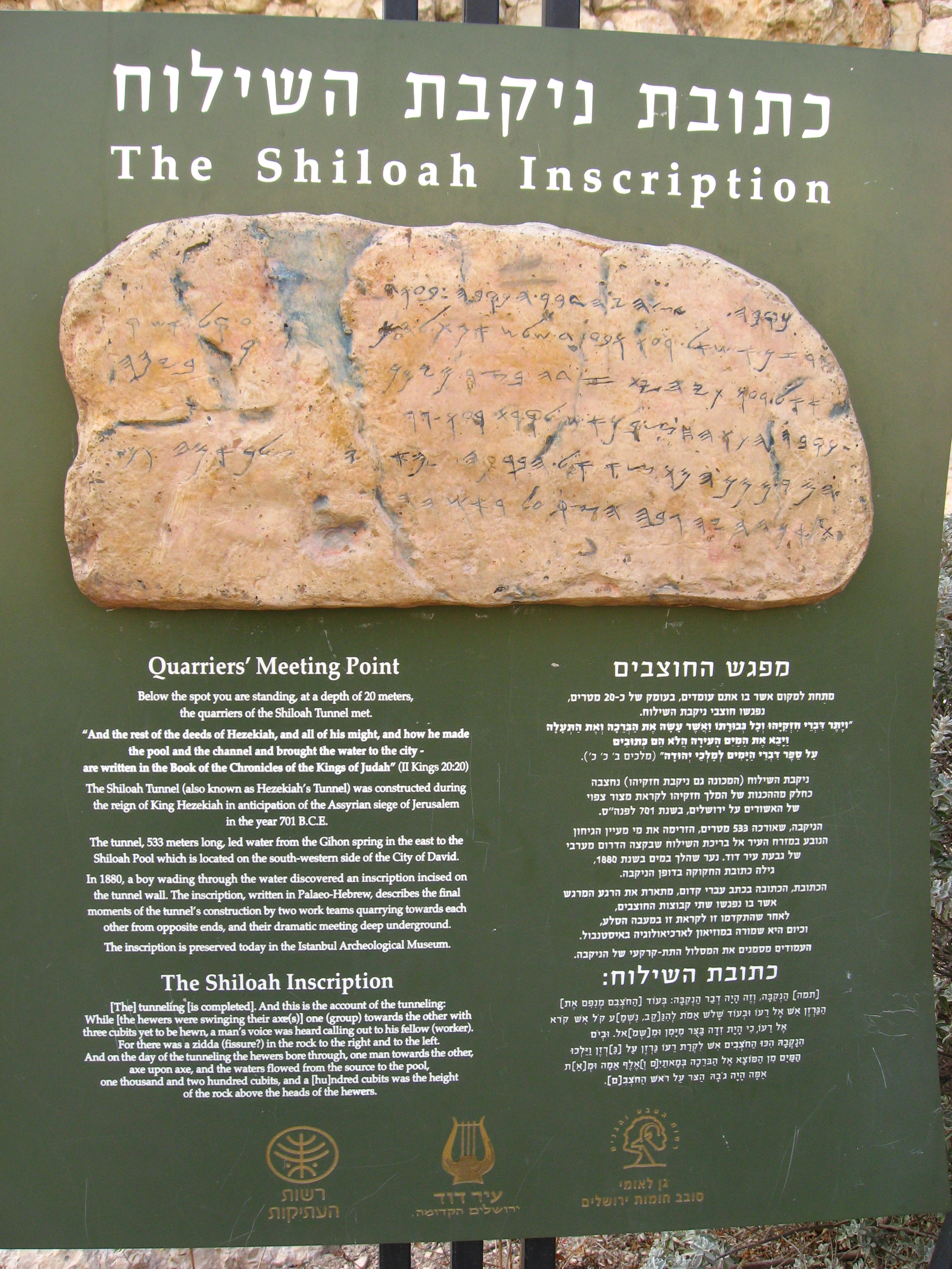 Wir kamen an eine Stelle, die als „Quarrier’s Meeting Point“ bezeichnet wurde. Als erstes erschien vor meinem geistigen Auge eine Szene, bei der sich antike Tunnelbauarbeiter zur Mittagspause versammeln, ihre von der Gattin liebevoll verpackte Falaffel aus der Tupperdose schälen und einen lustigen Klönschnack beginnen: „Hey Mosche, hast Du schon gehört, AC Bethlehem gegen Jericho United 4:2!“ Oder dass hier einst der Betriebsrat tagte. Doch weit gefehlt, eine Infotafel raubt mir meine farbenprächtigen Ideen der hypothetischen Altertumsforschung: Hier haben sich zwei Bauarbeiterteams getroffen, die von zwei Seiten aus den Tunnel gegraben haben. Dies geht aus einer Inschrift im Tunnel hervor, die ein Junge im 19. Jahrhundert zufällig gefunden hat („Mama, Mama, guck mal, Grafitti!“ „Igitt! Da müssen wir Bescheid sagen, damit das entfernt wird, wie sieht denn das aus!?“)