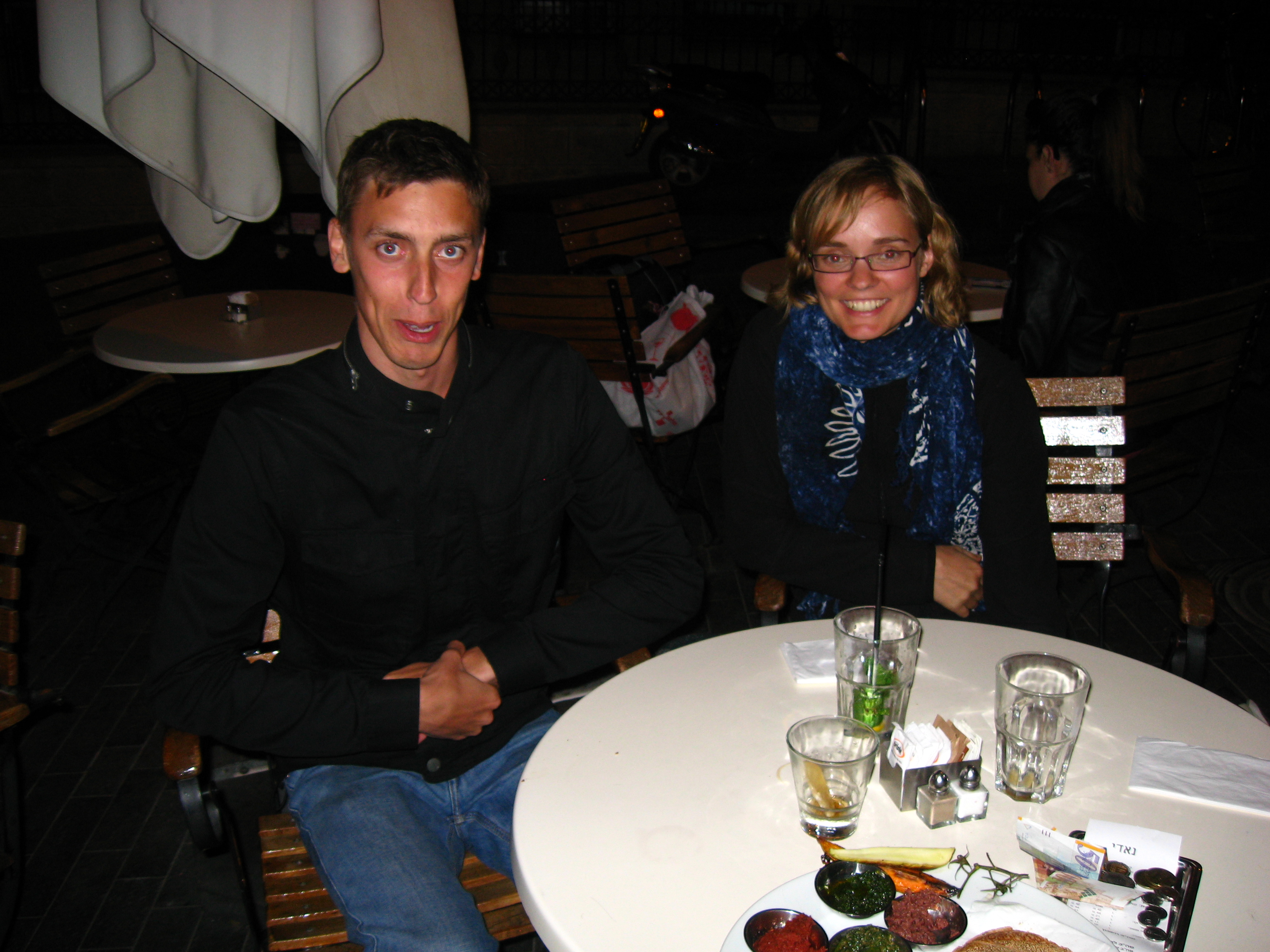Nach einem ausgiebigen Gang über den Markt meldete sich Hunger, und wir suchten uns eine gastronomische Einrichtung in einer Straße, wo Ulli und Alex zuvor schon einmal was gegessen hatten. Wir setzten uns draußen an einen Tisch, Alex nahm green Shukhran (so hieß das, glaube ich, ein Gericht mit Ei, Knoblauch, Spinat und so), Ulli nahm etwas mit viel Couscous, und ich ein Barchetta mit geräuchertem Thunfisch. Mein Essen war dann ziemlich mediterran, mit Oliven (die ich ja nicht so mag) und viel Basilikum (das ich gern mag), Tomaten, Mozarellabällchen und so weiter. Insgesamt recht lecker. Und es gab ein Goldstar dazu. Allerdings ließ mich Ulli mal ihre Limonade probieren (mit Zitronenscheibe und Pfefferminzblättern), und die war so gut, dass ich mir so eine auch nochmal bestellen muss. Geschmacklich hat Ulli heute ein wenig meinen Horizont erweitert, geschichtlich ebenfalls.