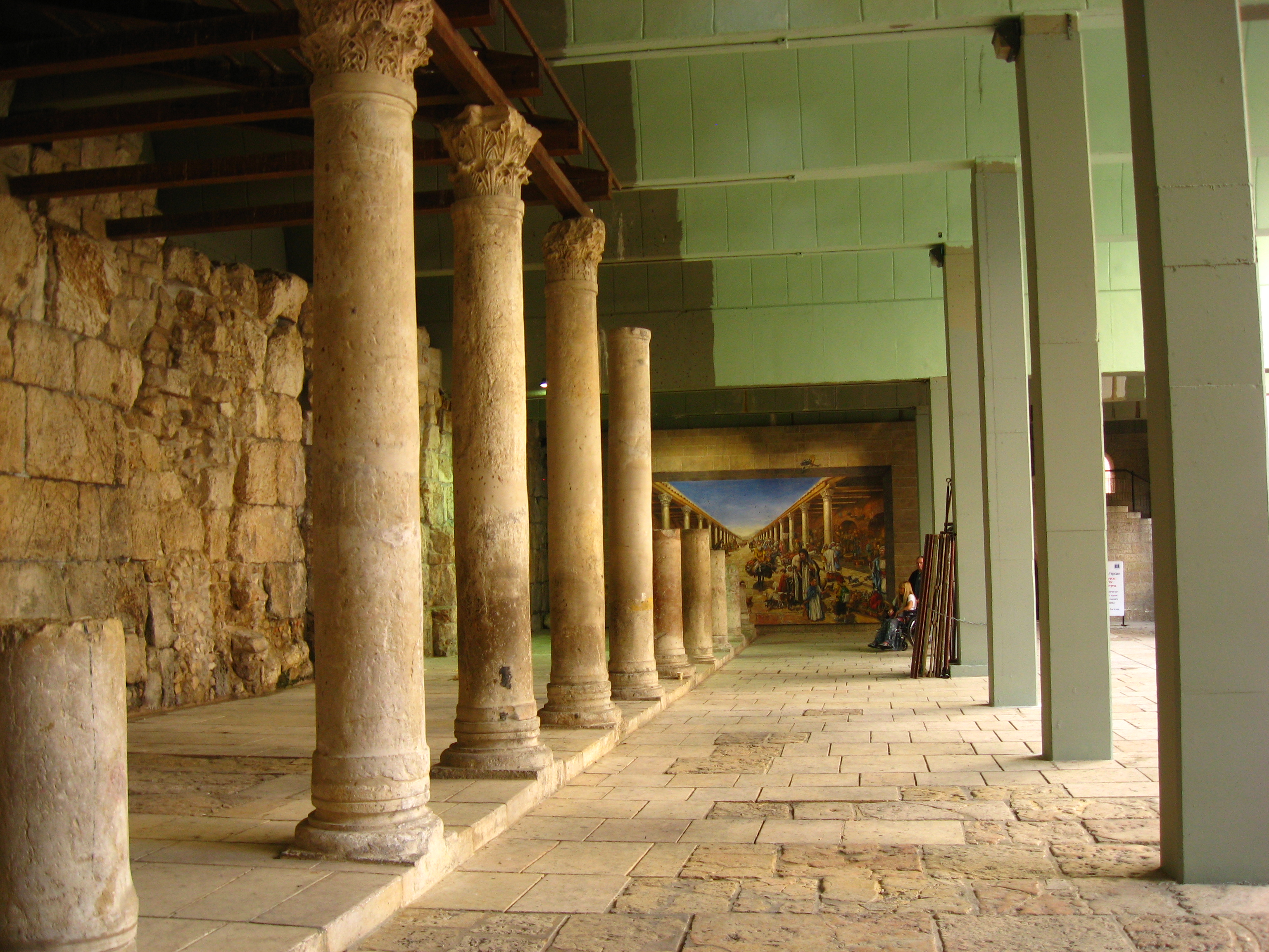 Was also nun? Ich hatte mein Ziel Tempelberg erreicht. Entweder, noch irgendwo was essen wie gestern, oder vielleicht nochmal ins Neue Jerusalem? Erstmal musste ich natürlich wieder mal durch das Labyrith des muslimischen Viertels mit allen seinen Gefahren. Ich kam dann an einer Stelle heraus, wo ich gestern schon einmal war: Am Cardo. Unmittelbar vor der Abzweigung konnte ich ein wenig einer deutschsprachigen Führung zuhören: Demnach wurden große Teile des Jüdischen Viertels im Sechstagekrieg 1967 von der jordanischen Armee zerstört. Als Israel das Jüdische Viertel wieder aufbaute, nutzten Archäologen die Chance, bei der Gelegenheit mal nachzubuddeln, was wohl noch von den Römern übriggeblieben war, die hier ja auch schon mal das Sagen gehabt haben.