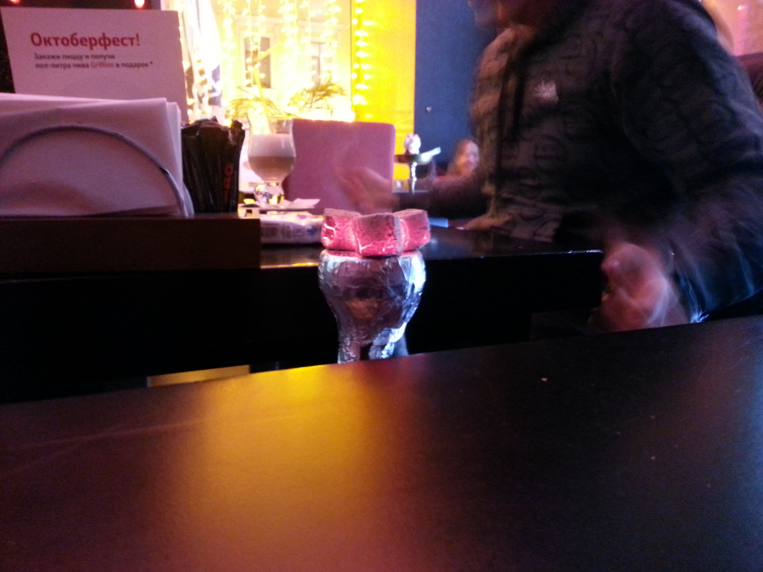 Also musste als Ausweichlösung wieder das „Pizza & Grill“ herhalten. Erst sah es da auch schlecht aus, aber ich bekam doch noch einen kleinen Tisch. Es war noch einiges an Zeit zu überbrücken, die ich für eine grilled chicken Pizza, ein großes Bier und anschließend einem Stück Country Cake mit Capuccino als Dessert investierte. Uff. Ganz schön üppig, der Tag, so gastronomisch gesehen. Aber erstens: Was soll man schon außer Farmen mit der Zeit anfangen, zweitens ist der Lebensmittelkonsum halt tauglich als Legitimation, trocken und warm irgendwo sitzen zu können und drittens würde es vermutlich bis zum Nachmittag des kommenden Tages allenfalls Wasser und Müsliriegel geben. Auch am Nebentisch wusste man, es sich gutgehen zu lassen, da war schon wieder eine Sisha am Start.