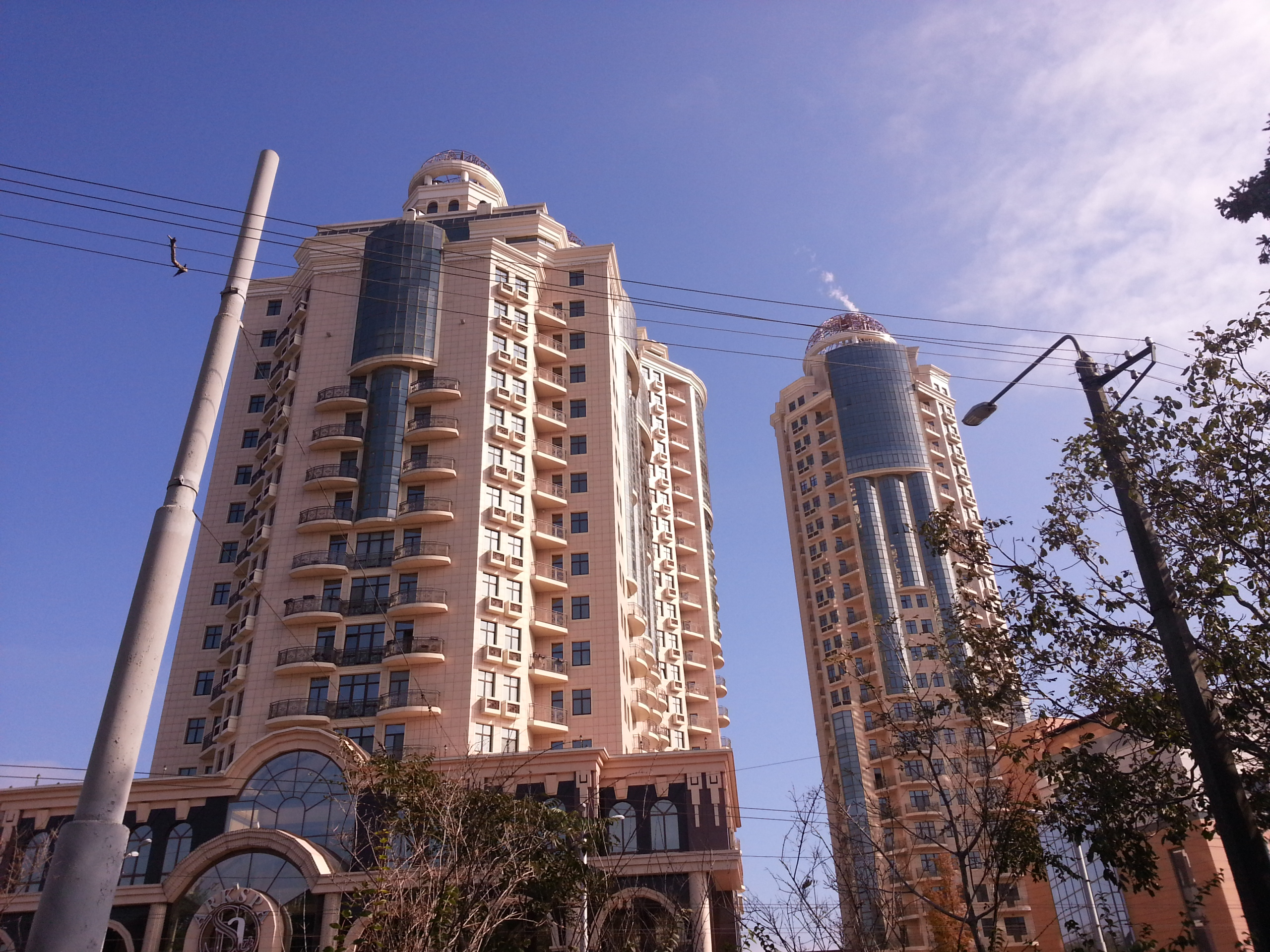 Als ich mich meinem Hotel näherte, war ich in einem Gebiet, welches wenig mit der Umgebung meines ersten Hotels in Odessa zu tun hatte. Hier ragten moderne, aber seelenlose Betonbauten hoch in den Himmel. Dazwischen erblickte ich weitere dieser Kästen, die sicher gerade im Bau befinden. Offenbar wird hier gerade viel neue Wohn- oder Bürofläche für wen auch immer benötigt. Dies hier hatte mit dem Charme der vielen griechisch geprägten Gebäude, der üppigen Außengrastronomie und dem selbst zu dieser Jahreszeit beachtlichen Publikum auf den Straßen in der Nähe der Potemkin-Treppe nichts mehr zu tun.
