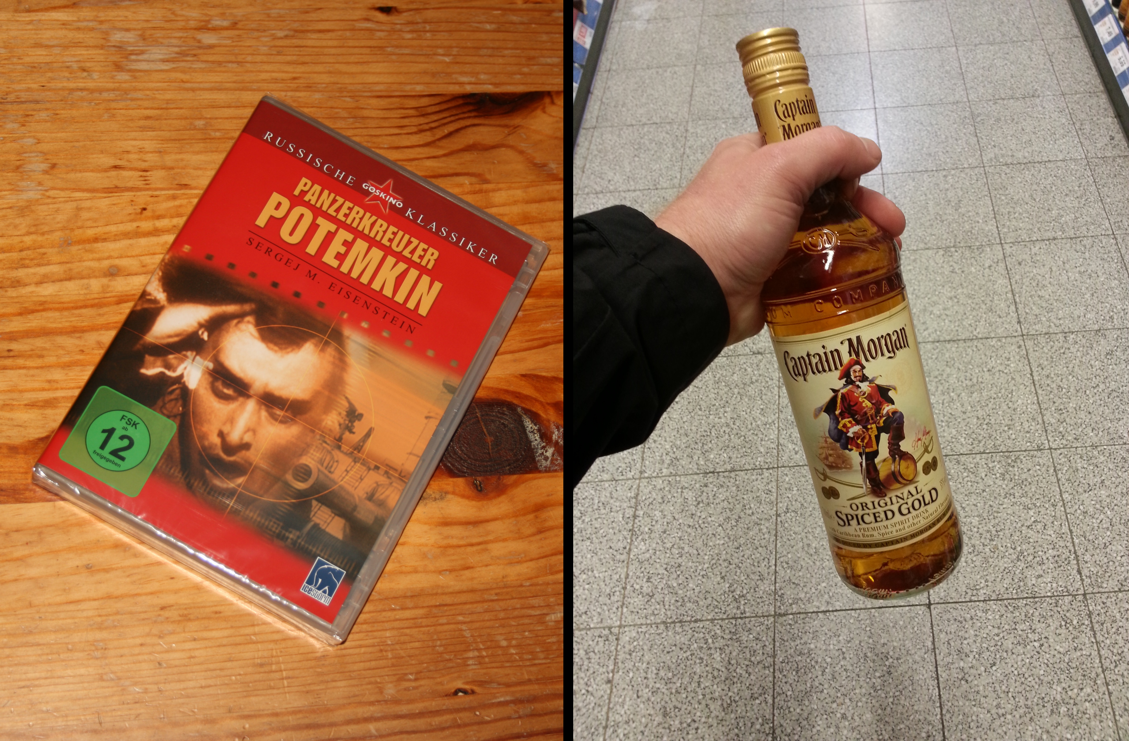 Tja. Ein Gewinner wollte die DVD „Panzerkreuzer Potemkin“, der andere eine Flasche Rum. Ich sag‘ aber nicht, wer was bekommt… In beiden Fällen gut gewählt und Herzlichen Glückwunsch den Gewinnern!