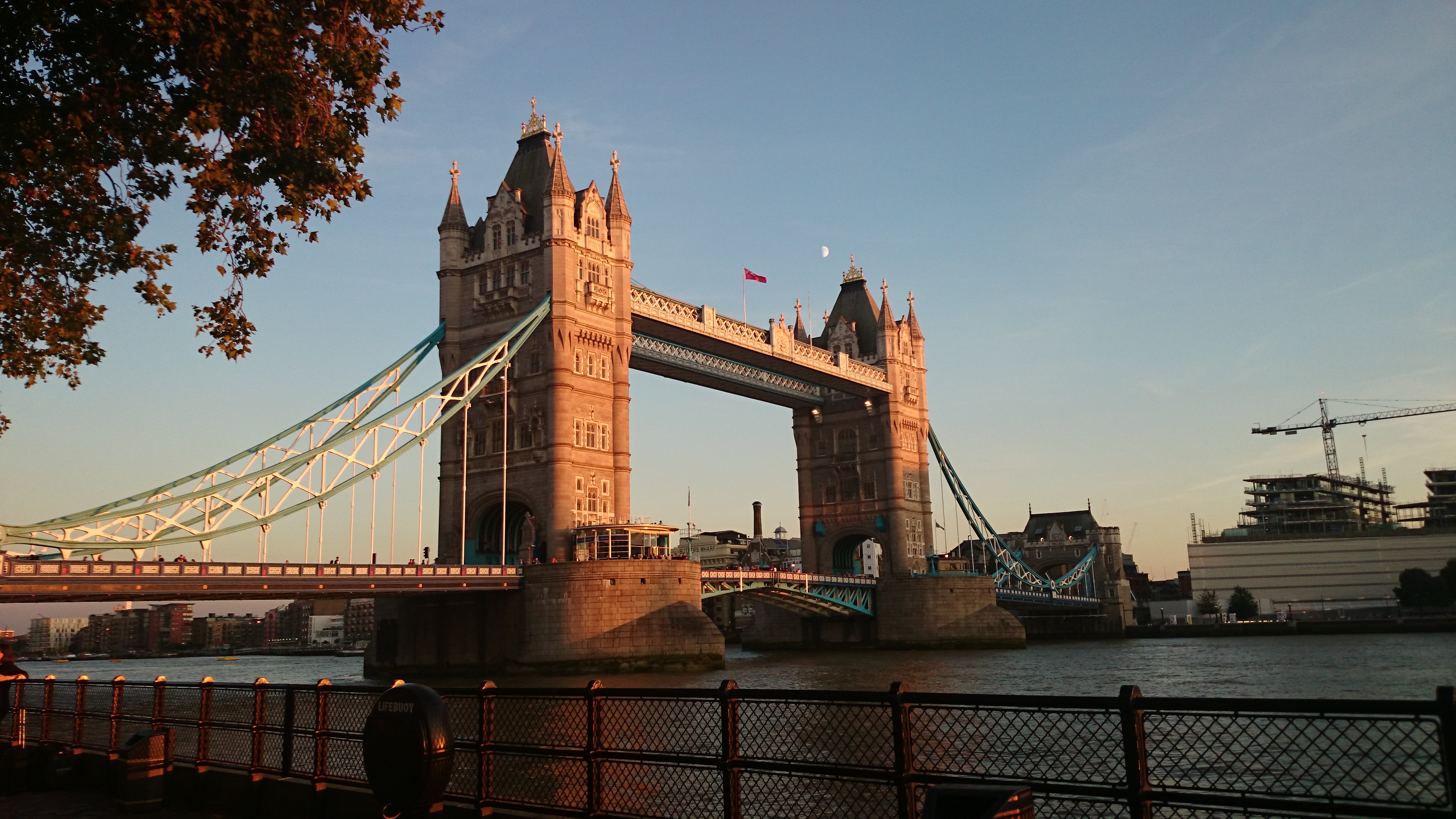 „The Shard“ hatte ich abgeharkt, also wohin nun? Es wurde langsam Abend. Daher wollte ich langsam mal was zu Essen suchen, nicht zu teuer und meinetwegen auch „fast“. Außerdem wollte ich warten, bis die Sonne untergegangen wäre, um ein paar Nachtaufnahmen von der Tower Bridge, „The Shard“ etc. zu machen. Was einigermaßen Günstiges zu Essen zu finden hoffte ich eher am Nordufer, also nochmal rüber über die großartige Brücke. Auf der anderen Seite ging ich durch einen Eingang in ein Areal zwischen Tower und Themse. Hier wimmelte es genauso wie sowieso in dem ganzen Bereich von Touris, viele Asiaten, und viele Deutsche. Hm… langsam verstehe ich meine Schwester und meine Neffen. Wenn ich weiter weg oder in weniger Tourimäßigen Regionen (z.B. Ukraine…) mal vereinzelt jemanden treffe, der Deutsch spricht, finde ich das eigentlich eher nett. Aber hier drang derartig viel deutsches Tourigelaber an mein Ohr, das ging mir hier in London schon auf den Keks. Die Asiaten benutzen für ihre Selfies übrigens gerne so ein Teleskopding, in das sie ihr Smartphone vorne einklinken und es damit auf Distanz halten konnten. Ich habe dann aber trotzdem dreimal bereitwillig Fotos von irgendwelchen Leuten vor der Towerbridge gemacht. Meinereiner hatte irgendwie keine Lust auf solche Bilder. Ich brauche keinen Beweis, dass ich hier war, der ist in meinem Kopf und deswegen brauche ich meine Rübe nicht auf demselben Bild wie die Brücke. War auch schon mal anders, etwa in New York, aber im Moment habe ich keine Lust drauf.