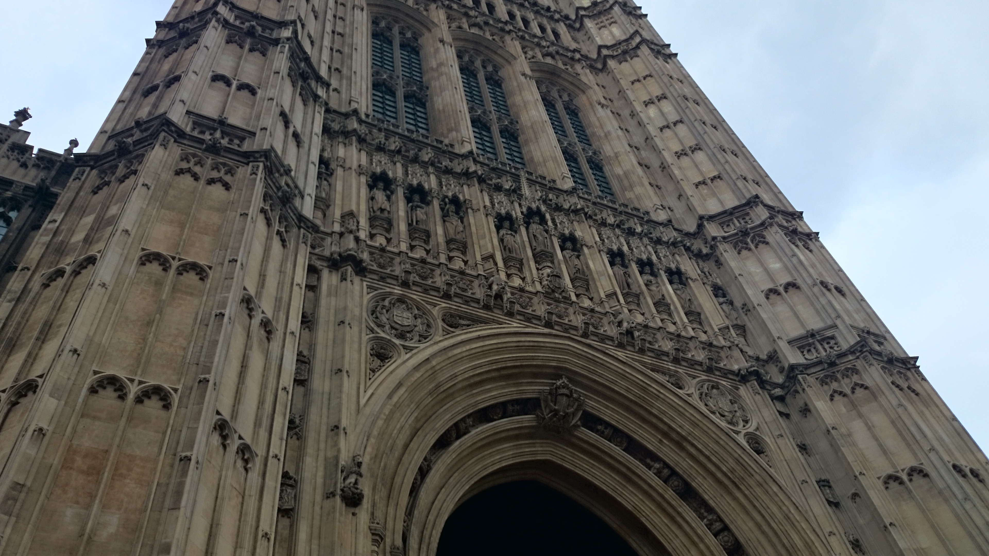 Zurück in Westminster drängte es mich, die Westminster Abbey, die berühmte Kirche, in der die royalen Hochzeiten und Begräbnisse (vermutlich auch Taufen und so) stattfinden. Auf dem Weg dahin sah ich dann den Westminster Palace von der anderen Seite und ganz aus der Nähe, unter anderem den beeindruckenden Victoria-Tower. Also… wenn es um Design oder Architektur geht, mag ich es lieber schlicht. Und das war das extreme Gegenteil davon. Dennoch, die schiere Größe, die vielen Details und die Geschichtsträchtigkeit der Anlage überwältigten mich fast. Ich interessiere mich bekanntlich für Technik, weniger für Geschichte oder Kunst. Deswegen hatte ich auch hier null Interesse, mich für wahnsinnig viel Geld stundenlang durch den Komplex führen zu lassen und mir Gemälde und Ritterrüstungen anzusehen. Während draußen all die schönen Portale herumstehen. Nicht mein Ding. Mir reicht es, das Teil kostenlos von außen zu bestaunen und zu knipsen.