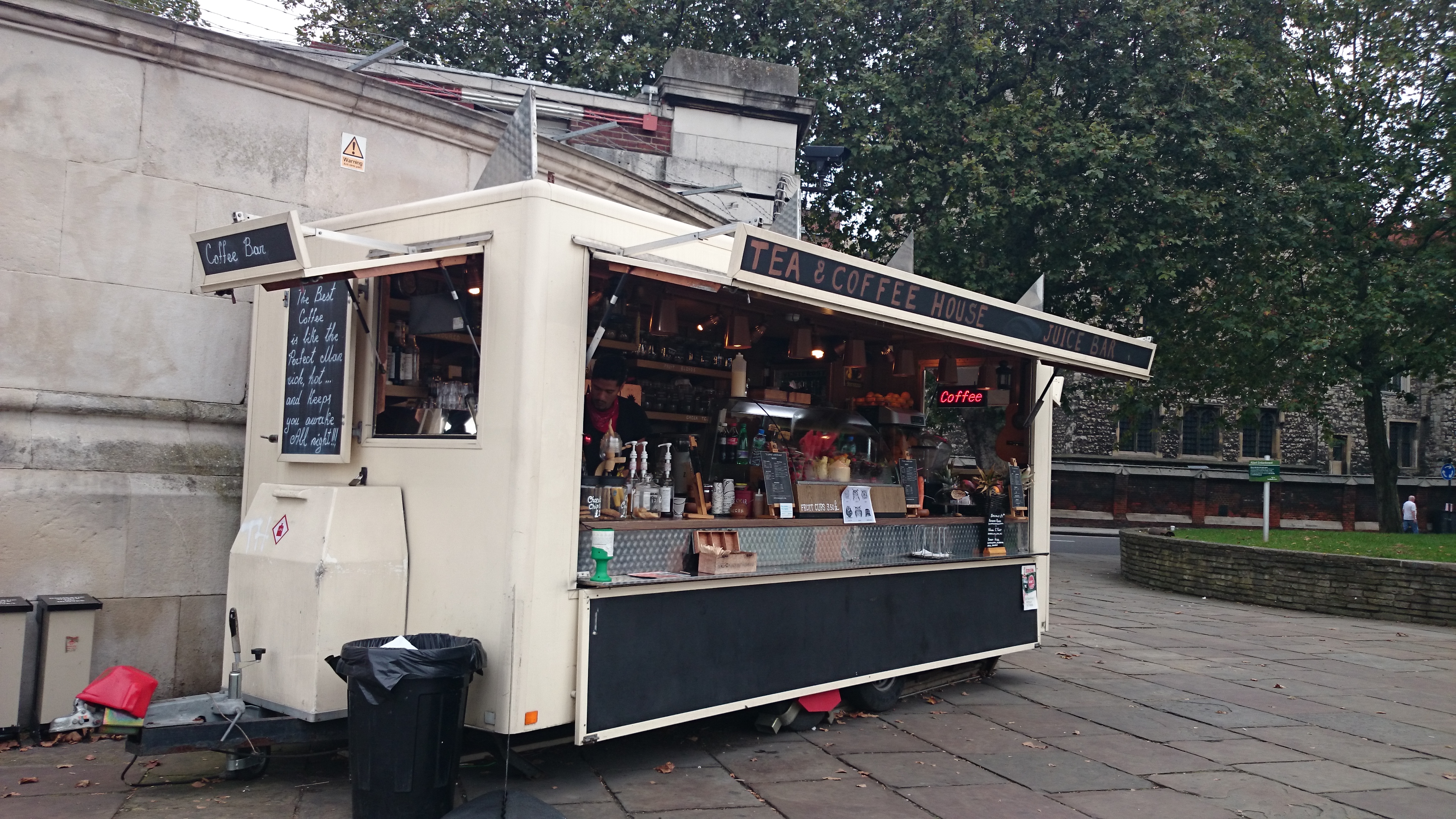Best coffee in London: Ich fragte eine Frau, die sich auch einen Kaffee kaufte, ob sie local sei. Nein, war die Antwort, keine Londonerin, aber aus der Umgebung. Und das hier SEI der beste Kaffee in London.