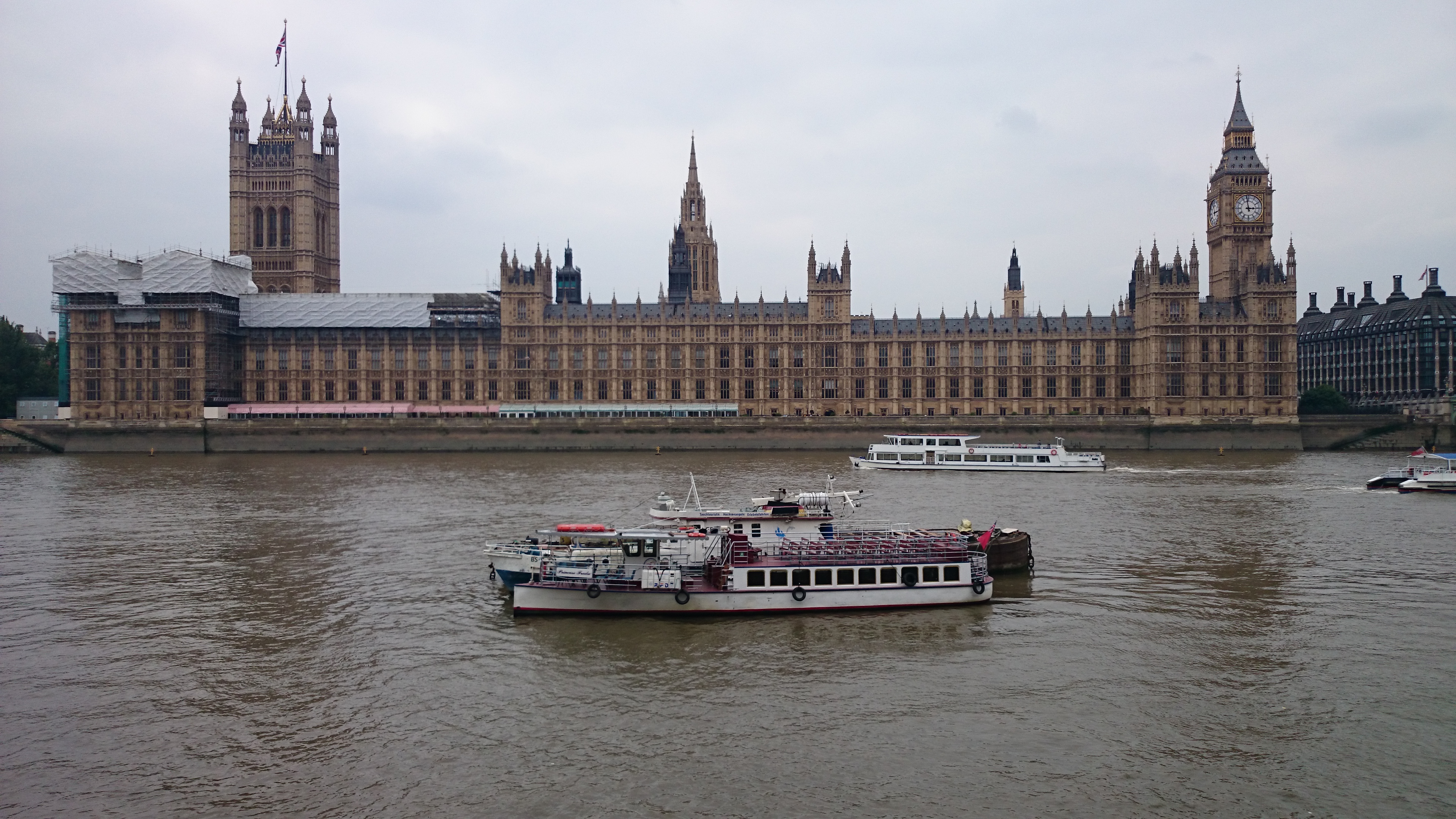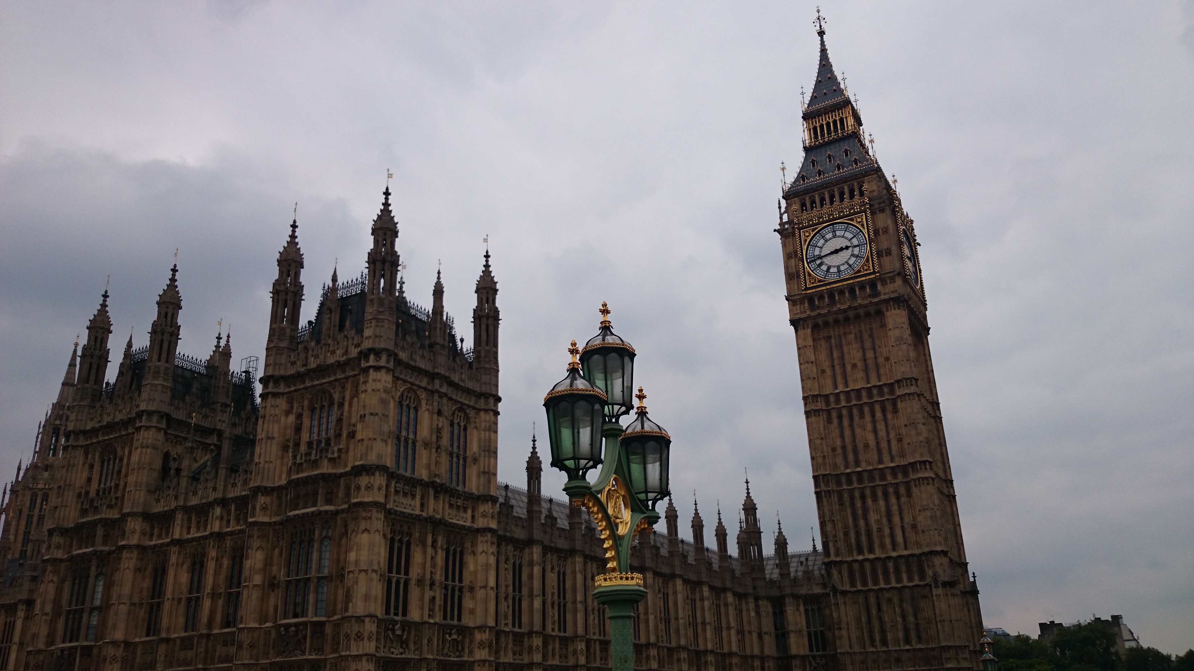 Ich kam so erst zwischen 13 und 14 Uhr los. Ich fuhr von Bethnal Green zur Liverpool Street und von da mit der Circle Line zur Westminster-Station. Ich stieg aus, suchte erwartungsfroh einen Ausgang und sah: Gitter. Und direkt dahinter ragte massiv der der Big Ben (der eigentlich Queen Elisabeth II Tower heißt, wie ich nun weiß) emport, direkt vor meiner Nase. Zwei Ingress-Portale, sofort eingenommen. Der schnelle Wechsel zwischen Gucken, Fotos knipsen und Portale bearbeiten ist mir inzwischen in Fleisch und Blut übergegangen… das läuft fast schon automatisch.