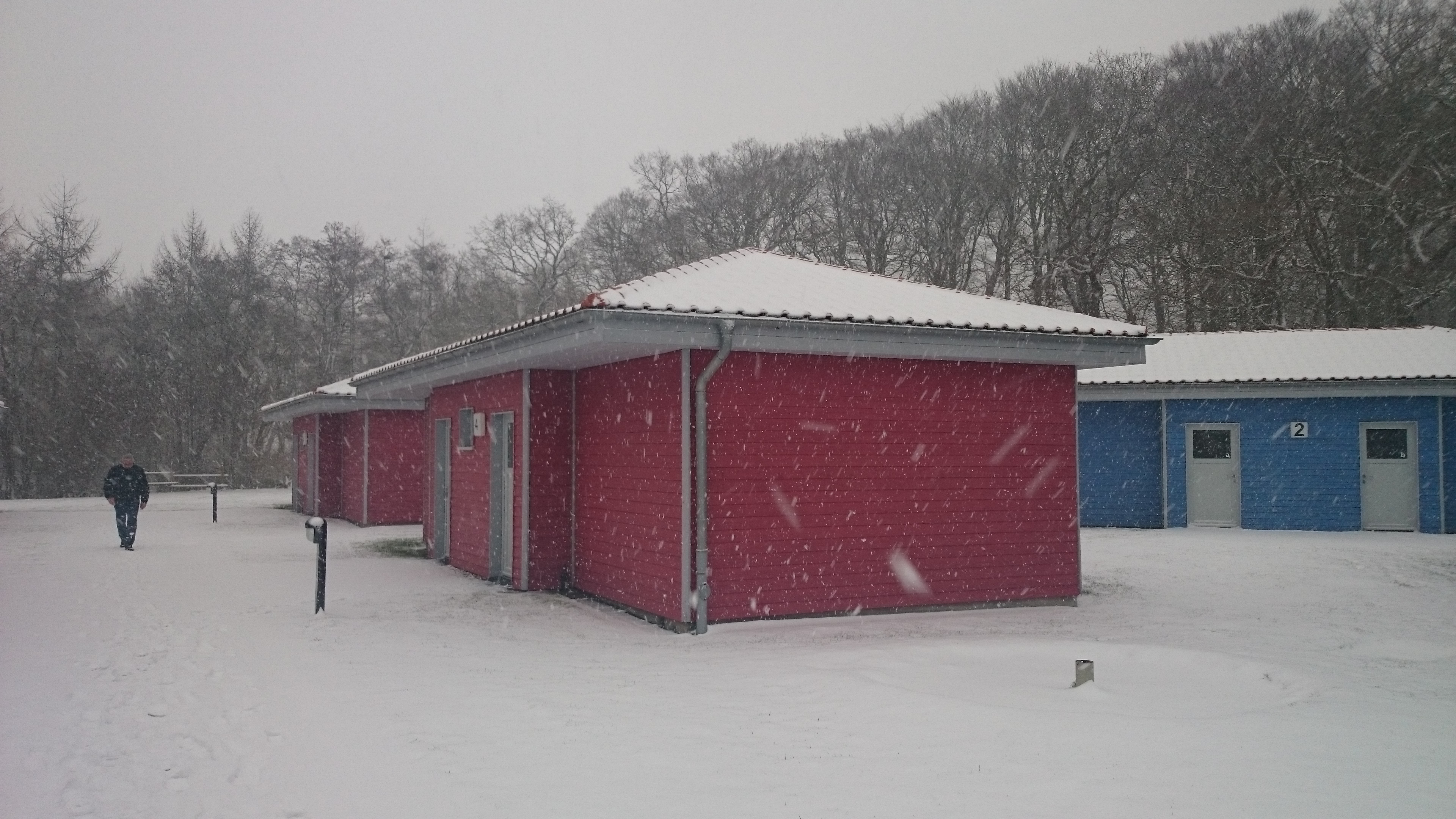 Apropos Frau Google: Unten auf der Luftansichtskarte sieht man in der Bildmitte die Jugendherberge von oben. Das wie ein Y geförmte Haupthaus im Süden enthält Speisesaal, Küche, Rezeption und Gemeinschaftsräume, die verstreuten Gebäude nördlich davon sind die Unterkünfte. Ich wohnte in Haus 4, das ist das Haus links unten von den vier kleinen Häusern parallel zur „Spiegelachse“ ganz oben.