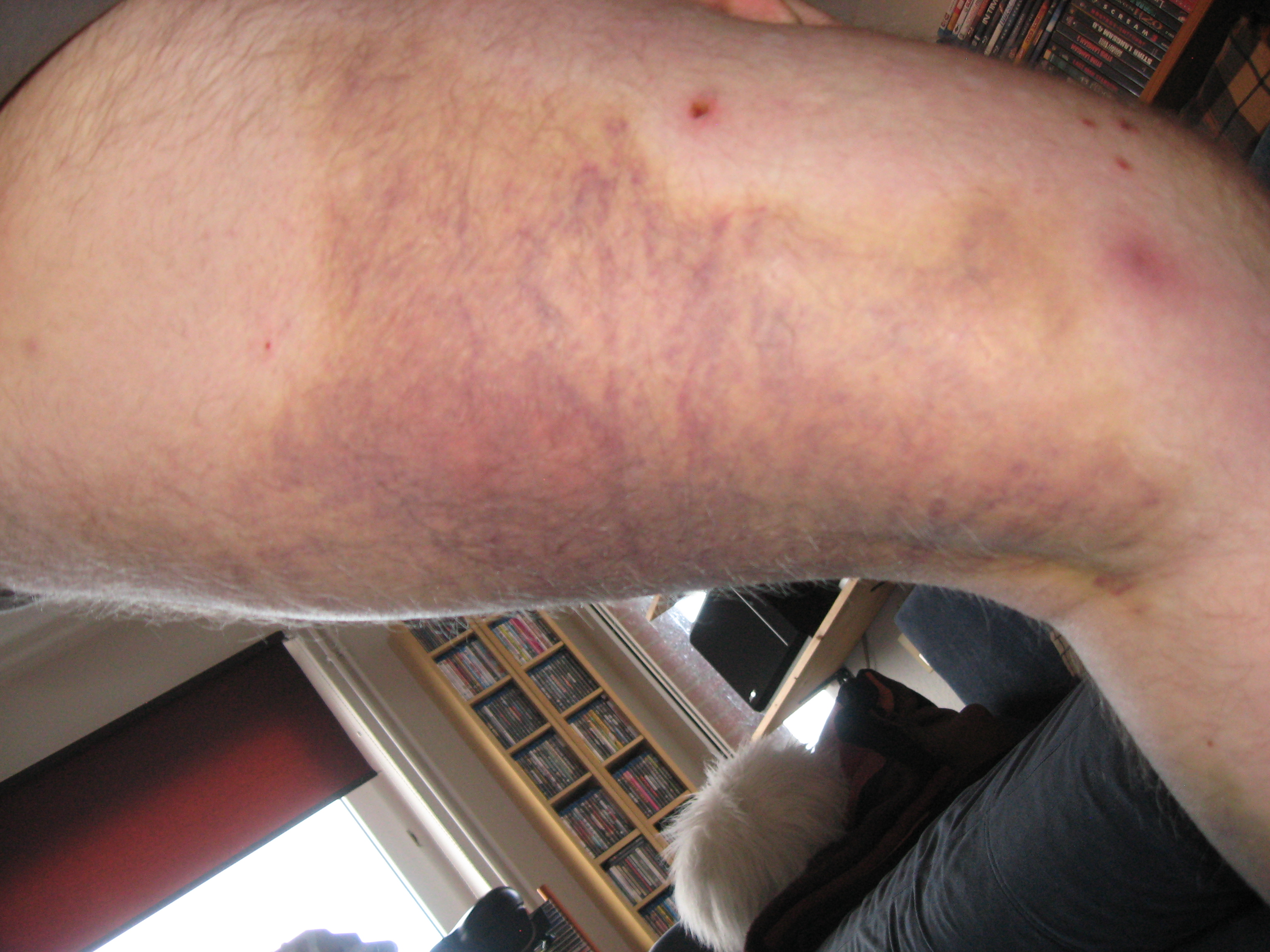 Nachtrag: Ich habe inzwischen mal einfach „Lymph-Set“ gegoogelt. So ein Ding kostet je nach Größe und Anbieter im Netz (oberflächliche Suche) zwischen 159 und 263 Euro. Vermutlich verdient irgendwer nicht schlecht daran. Bei Medikamenten verstehe ich, dass die Pharma-Industrie mit hohem Risiko arbeitet und vermutlich teure Fachkräfte bezahlen muss. Aber hier handelt es sich im Wesentlichen um flexible Bandagen. Vielleicht sollte man hier die Innovation nicht zu geringschätzen, aber trotzdem kommt mir das sauteuer vor. Ich glaube auch, dass nach jeder Lymph-Drainage ein neuer Satz à vier Binden vorgesehen ist. Vermutlich völlig unnötig. Die Dinger sehen genauso aus wie das, was Bernd mir gegeben hat mit den Worten „das kannst Du hundert Mal verwenden, zwischendurch nur mal waschen“. Der gesunde Menschenverstand sagt auch, dass da keine Wunde ist, also keine Sterilität herrschen muss, ergo: Wozu jedes Mal ein neuer Satz? Damit irgendwo die Kasse klingelt? Und Patienten von A nach B und zurück rennen müssen, damit endlich jemand den Wisch unterschreibt?