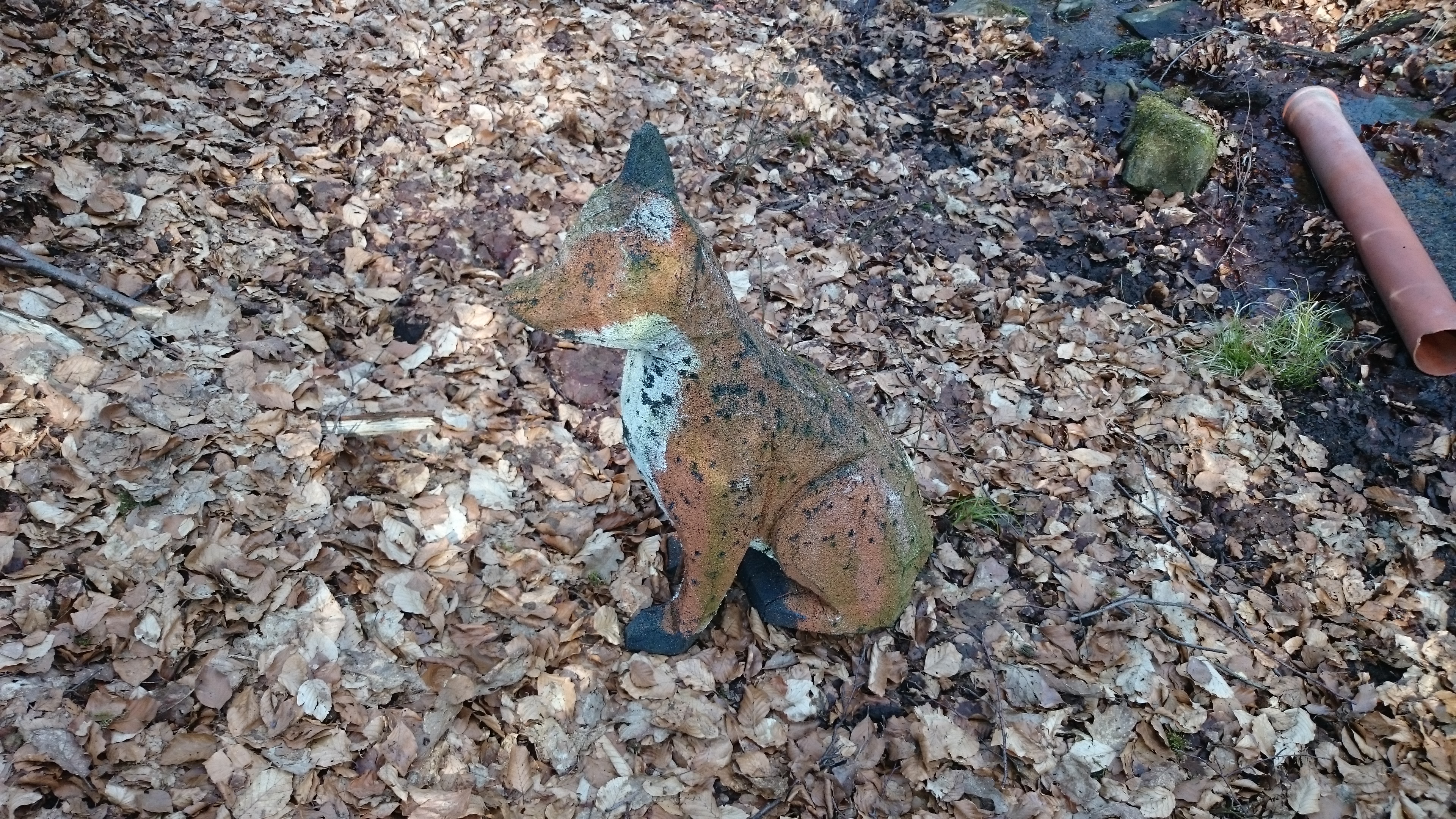 Reinecke begegnete mir unverhofft am Bach, wo ich mich zum Schmollen über mein Hüftproblem zurückgezogen hatte. Ich dachte, er wäre aus Holz geschnitzt, aber es entpuppte sich als Schaumstoff. Gleich als Portal eingereicht, versteht sich.