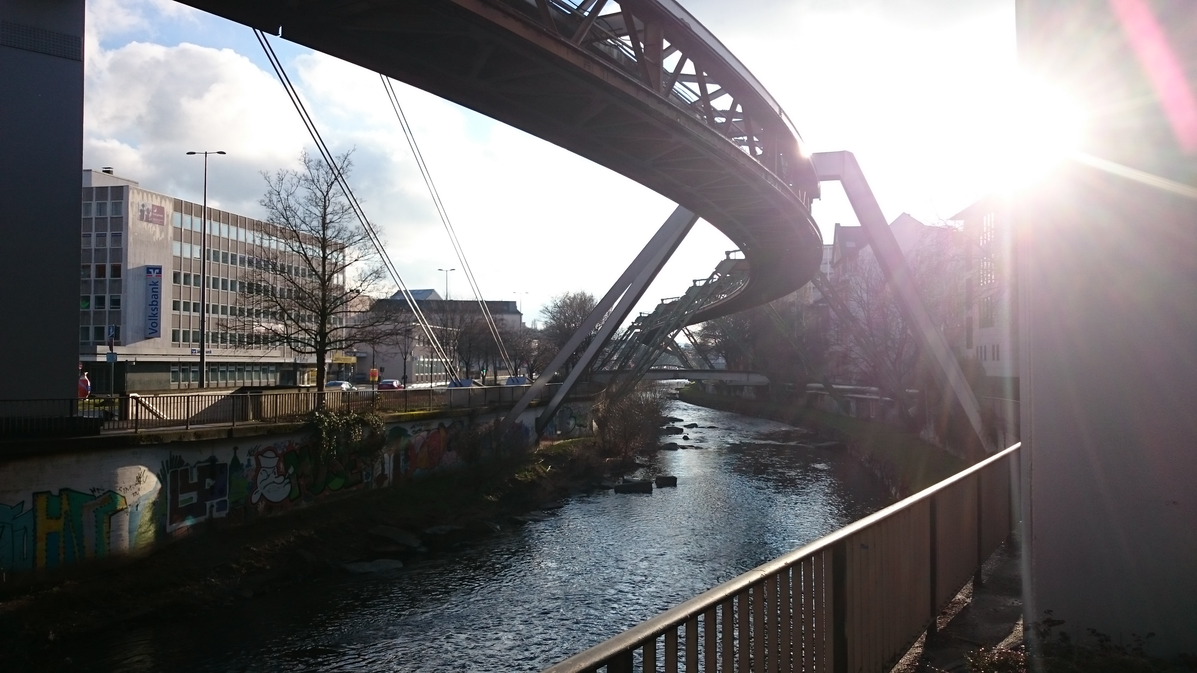 Ein Stück Schwebebahntrasse über der Wupper bei Barmen