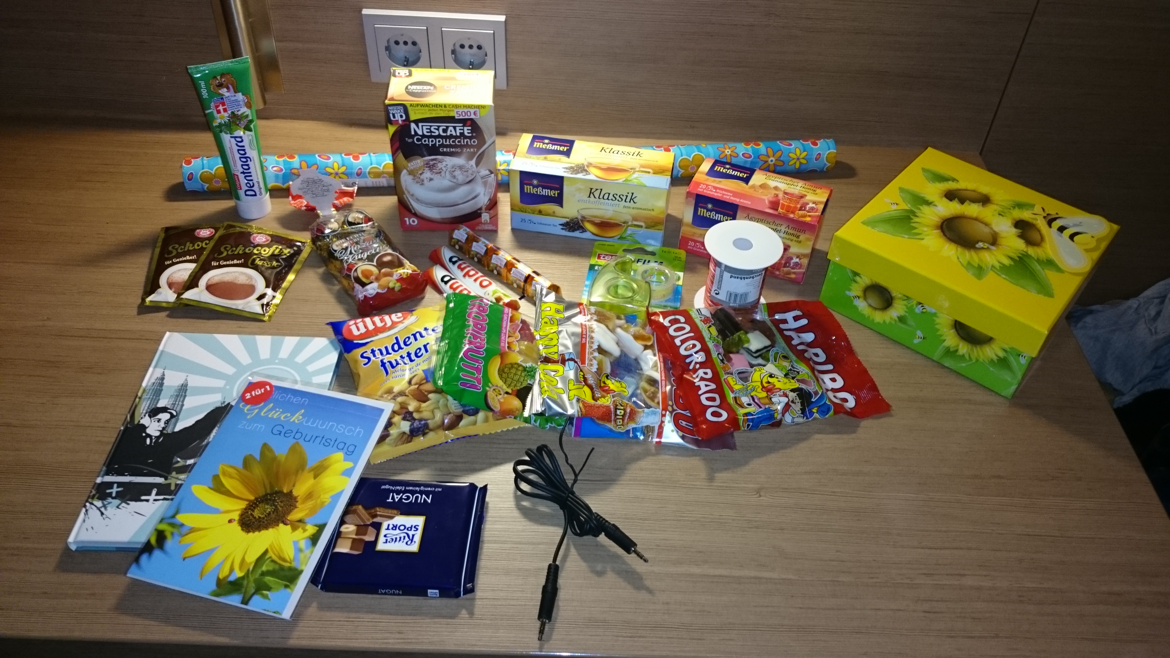 Morgen hat eine Dame aus meiner Gruppe Geburtstag, die ich ganz gut leiden kann. Vor allem aber tut sie mir leid, weil es ihr nicht gut geht (klar, in gewisser Weise geht es uns allen hier nicht gut, deswegen sind wir ja hier, aber sie hat auch noch physische Schmerzen zusätzlich). Wie auch immer, ich wollte für sie was zum Geburtstag besorgen. Und ein A5-Notizbuch, Zahnpasta, Süssigkeiten und noch so einige Dinge. Das Hauptgeschenk wird eine von einer anderen Mitpatientin gestaltete Tasse, die ich morgen erwerben kann. Die ist, wenn ich sie richtig verstanden habe, ausgebildete Designerin. Sie entwirft ihre Dekors mit Adobe Illustrator und schickt die Vektor-Dateien an eine Brennerei, die dann die Tassen produziert. Jedes Design wird in limitierter Auflage produziert, danach kommt eine neue Serie. Finde ich ganz cool. Jedenfalls soll die Gruppenkollegin eine von mir zum Geburtstag bekommen, mit ein paar Teebeuteln, Instantcappuccinotütchen und Süssigkeiten drin. Und dann brauchte ich dafür natürlich noch eine Verpackung…