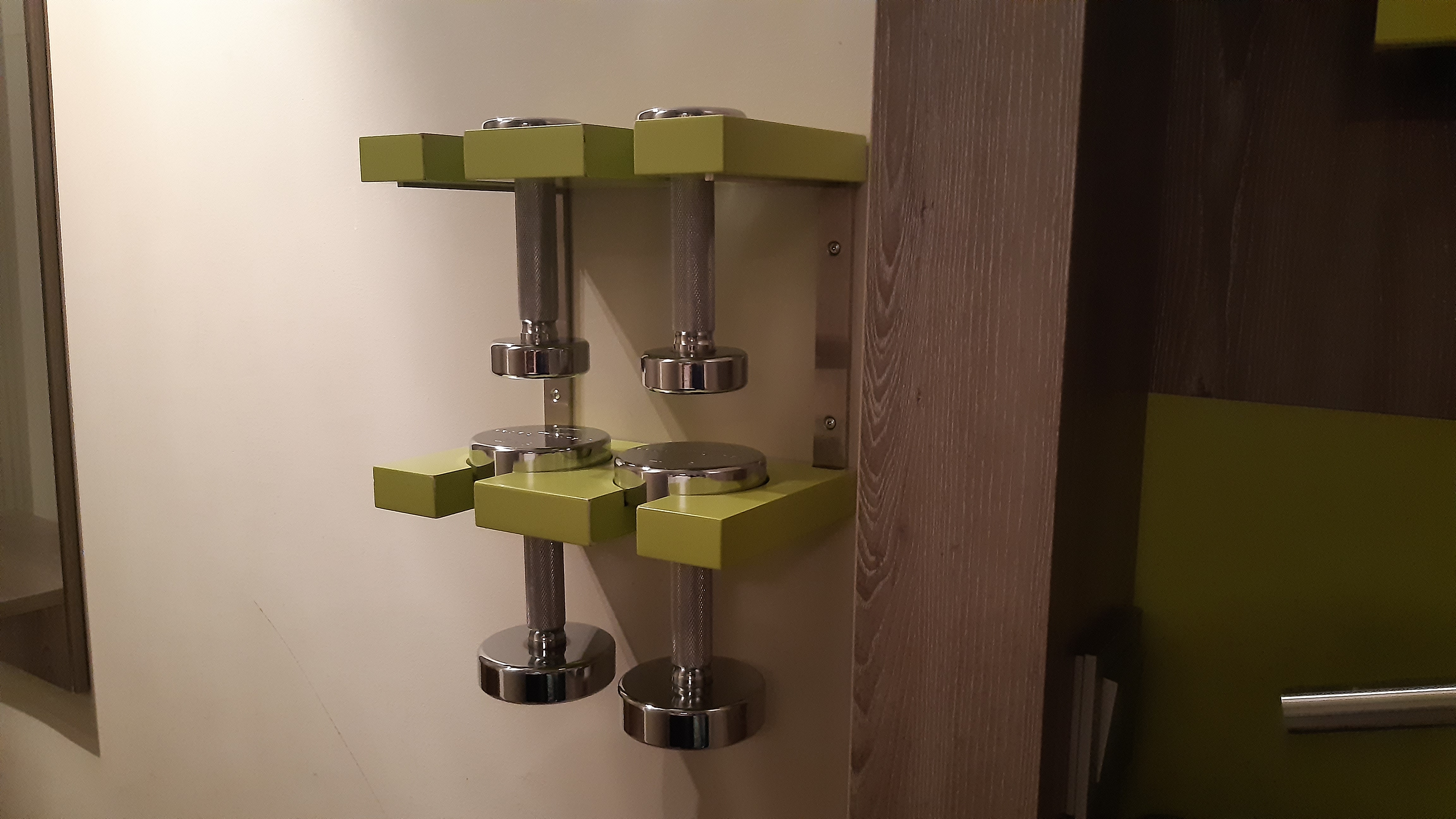 Die Hantel-Halterung ist ja witzig. Und überhaupt Hanteln auf dem Zimmer! Sowas hatte ich auch noch nicht!