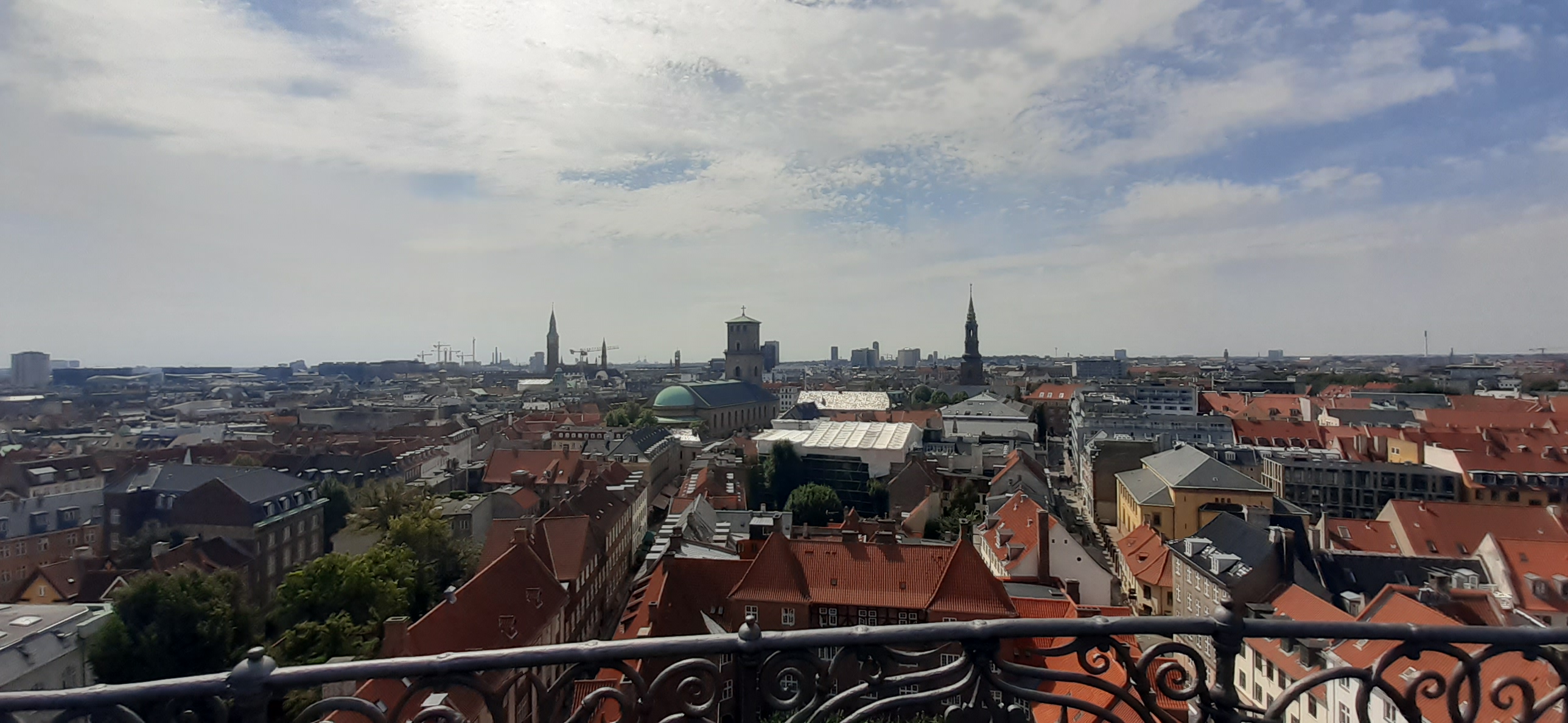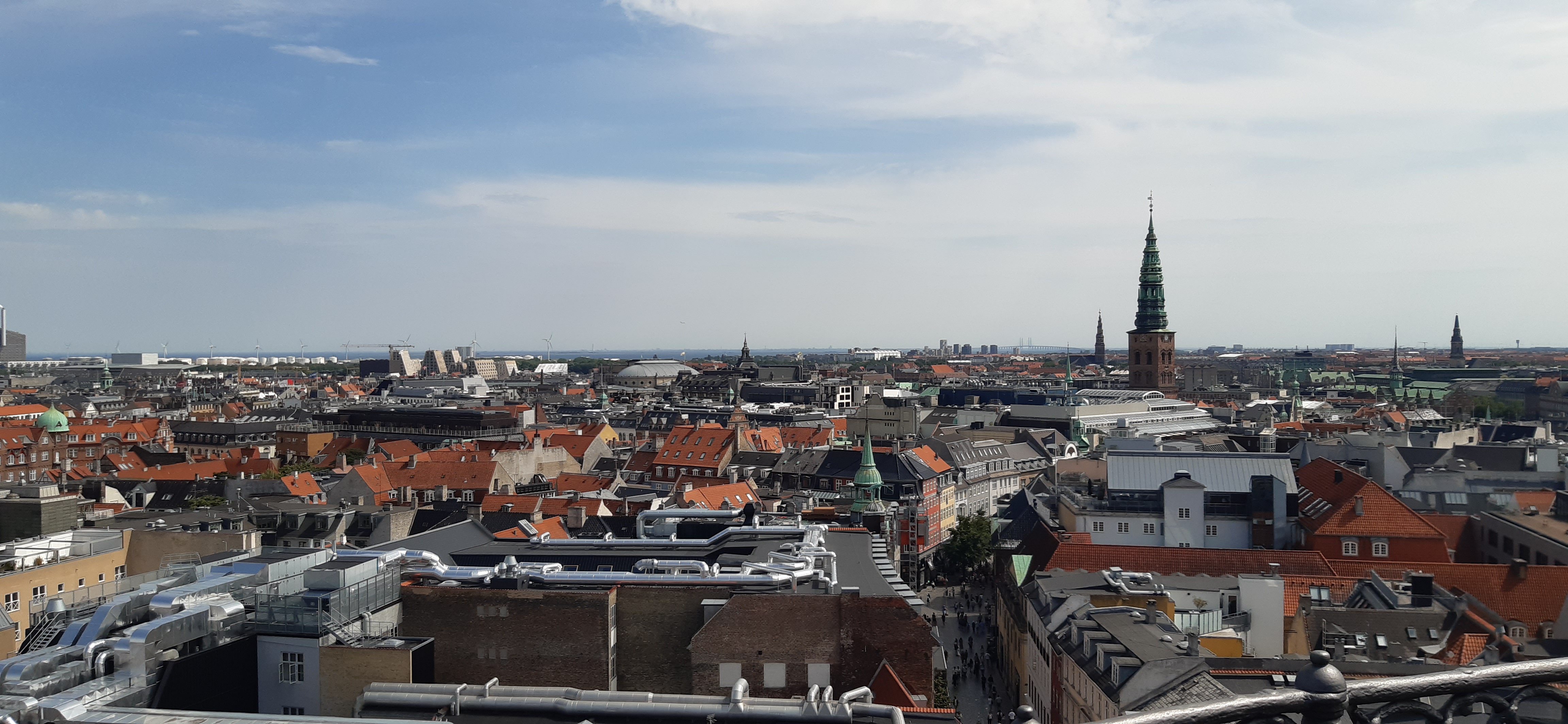 Die große Kirche etwa in Bildmitte mit dem quadratischen Turm ist die Vor Frue Kirke (Frauenkirche). Der größere Turm links davon ist der Rathausturm, der Turm rechts gehört zur Petrikirke, da war ich nicht. Was für ein Jammer.