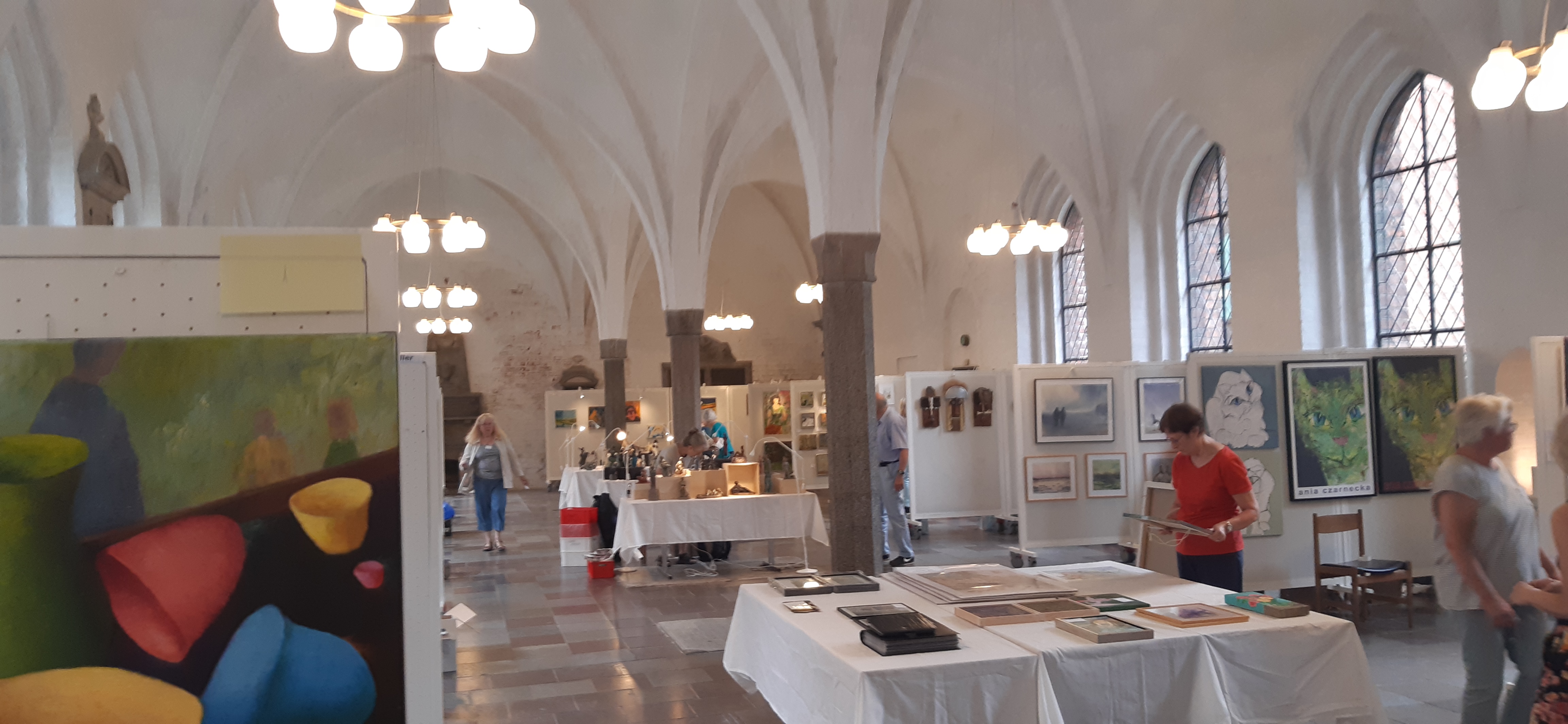Kunstausstellung in der Helligånskirke (Heiliggeistkirche). Oder offenbar eher in einem Nebengebäude, von dem ich dachte, es wäre wirklich das Kirchenschiff. Das sieht aber bei Wikipedia anders aus.