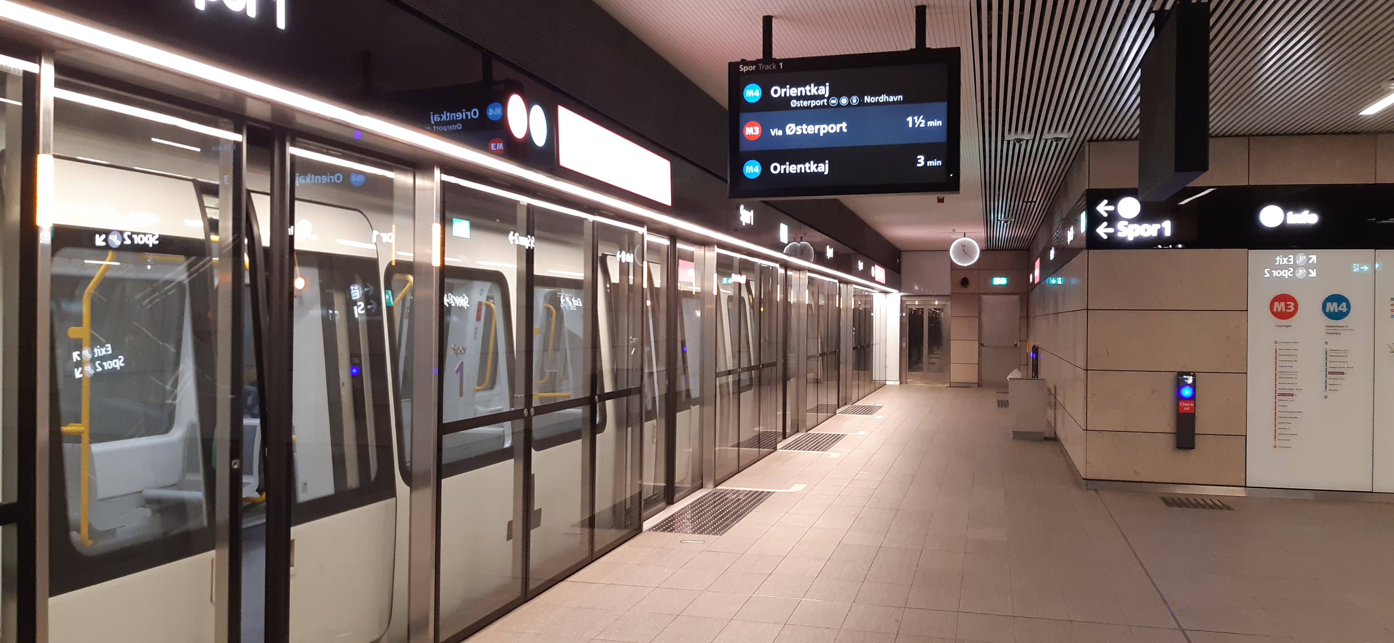 U-Bahnstation København H. Alles wirkt noch sehr neu, sehr modern, sehr sauber.