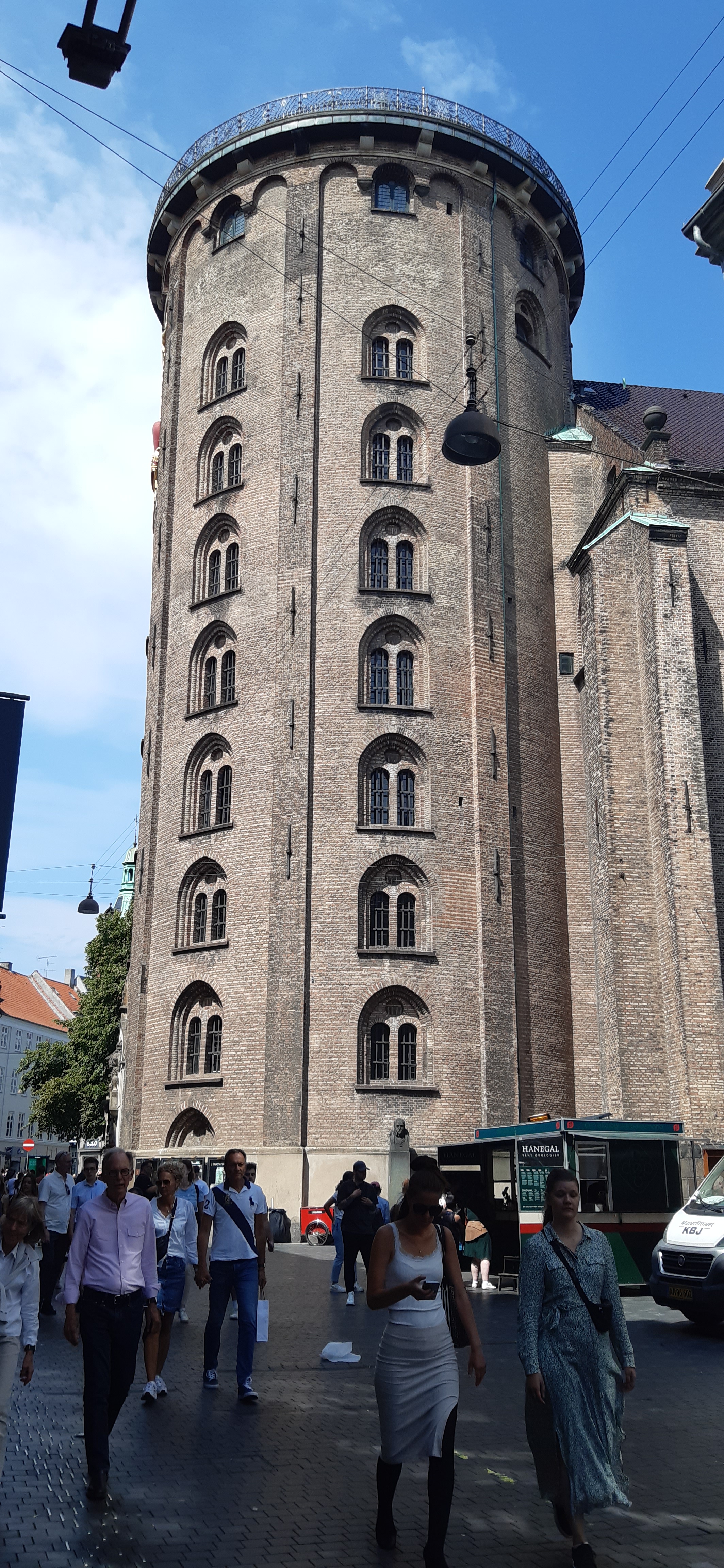 Nach der Kirchenbesichtigung wollte ich den sogenannten „Runden Turm“ besteigen. Über den wusste ich bisher nur, dass er halt rund ist (logisch), dass man auf eine um die 34m hohe Aussichtsplatform klettern kann und dass er ein Observatorium zur Himmelskörperbeobachtung enthält. Google Maps wies mir den Weg. Dabei hatte ich wieder so einen „Moment mal“-Moment und sah plötzlich direkt vor mir ein Geschäft, welches Gegenstände von gegenwärtigem Interesse anbot. Ich ging hinein und kaufte einen Gegenstand. Danach führte mich Google durch einen Park, den Kongens Have. Hier setzte ich mich zu einem wenig scheuen Rabenvogel auf eine Bank und legte, weil es sonnig war, Sonnenschutzcreme auf.