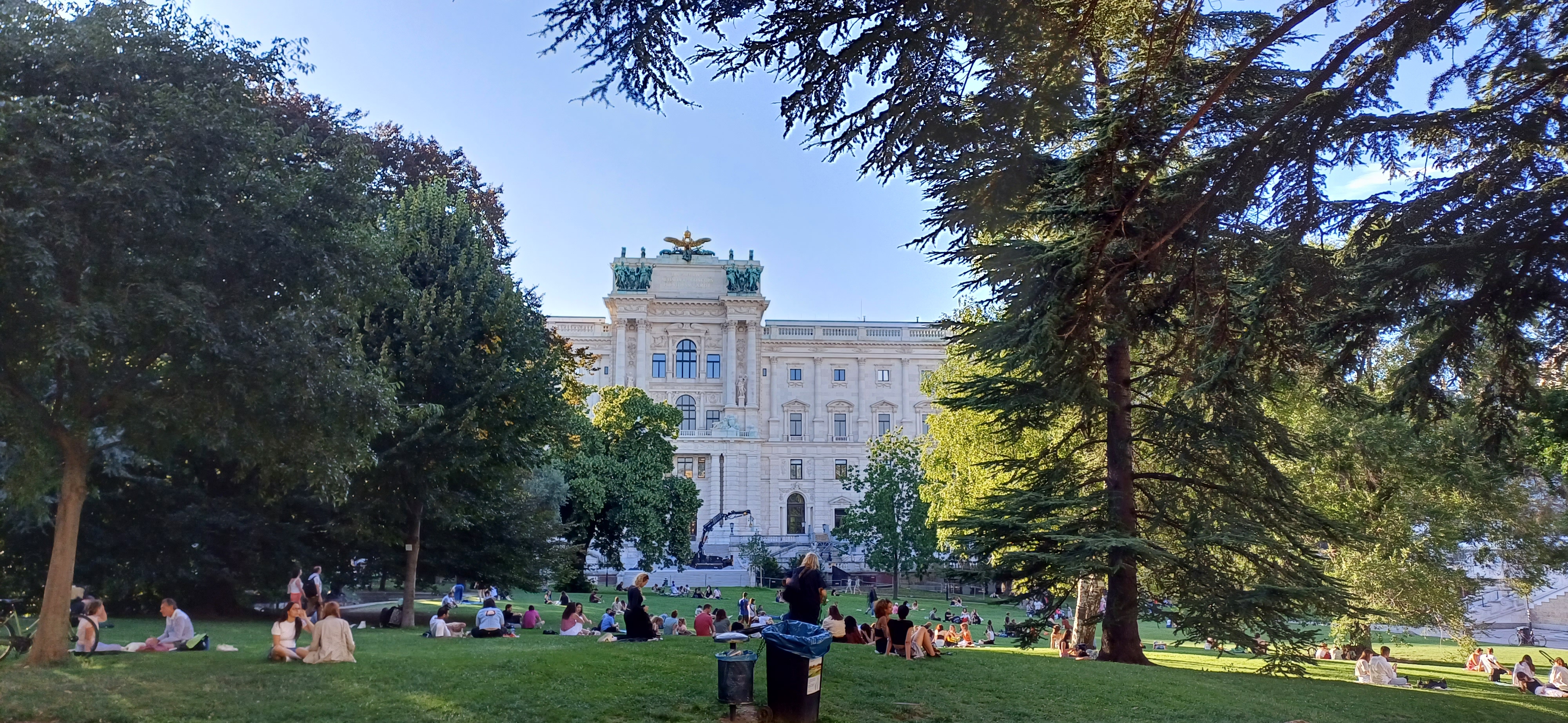 Dort bog ich dann links ab und ging den Opernring entlang, um zur Hofburg und dem zugehörigen Park zu gelangen. Das war ursprünglich mal ein privater Garten der Royals gewesen (so für Sissi und Franzl zum Lustwandeln oder so), aber seit langem ist er für die Öffentlichkeit geöffnet. Der Park ist wirklich schön und umgeben von architektonisch eindrucksvollen Bauen wie Teilen der Hofburg, dem Schmetterlingshaus und dem angrenzenden Palmenhaus. Auf der anderen Seite hat die Polizeiinspektion Wiens ihre Büros in einem historischen Gebäude. Hinter dem Palmenhaus kommt mir dem Albertina-Kunstmuseum gleich das nächste beeindruckende Gebäude, und hier ist man dann schon in der sogenannten „inneren Stadt“, die ebenfalls auf den ersten Blick viel großartige Architektur fürs Auge zu bieten hat.