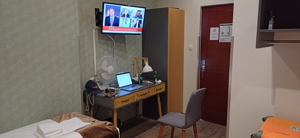 Wien. Hotel in Bahnhofsnähe. 21.58 Uhr. 23°. 5G Handynetz.