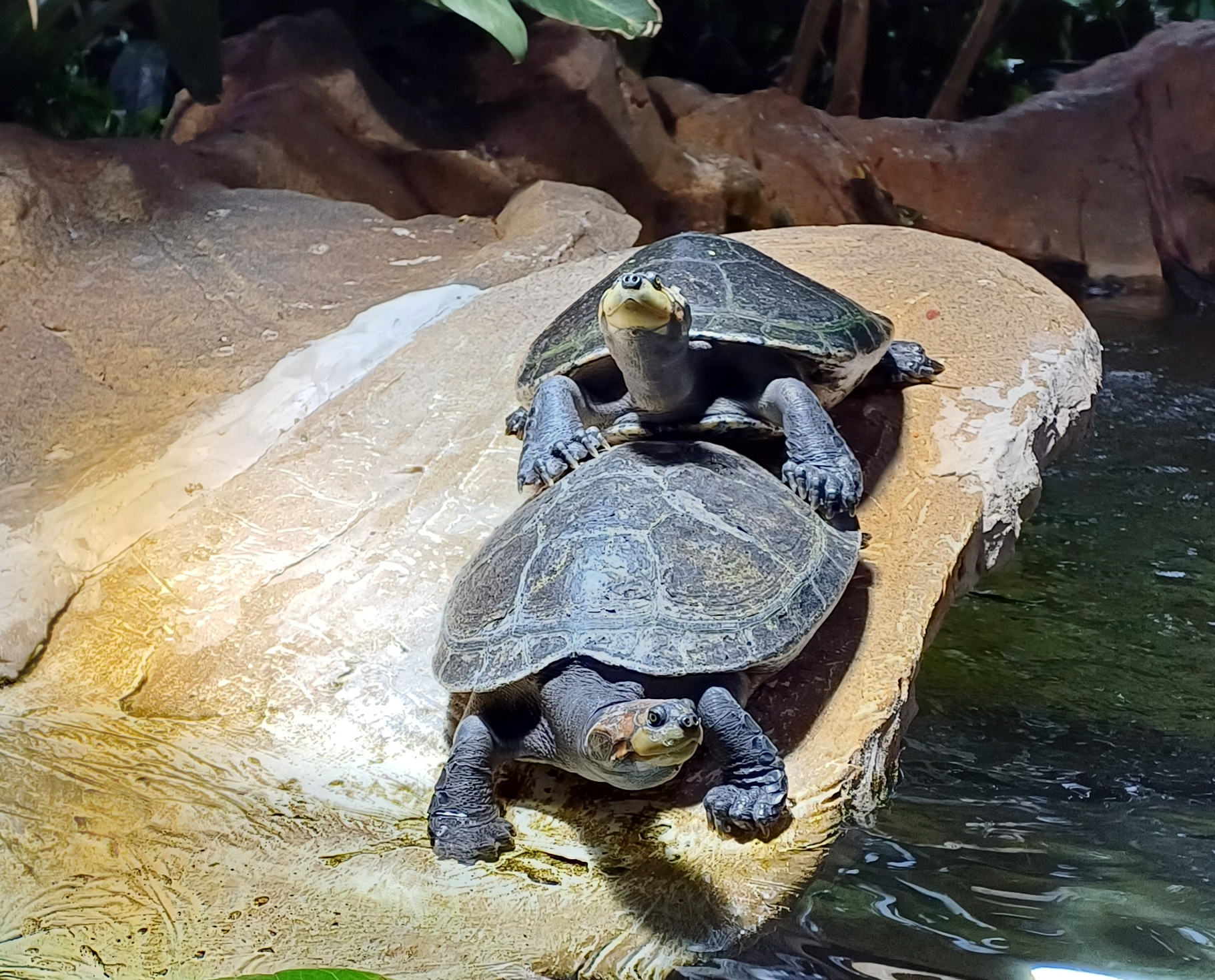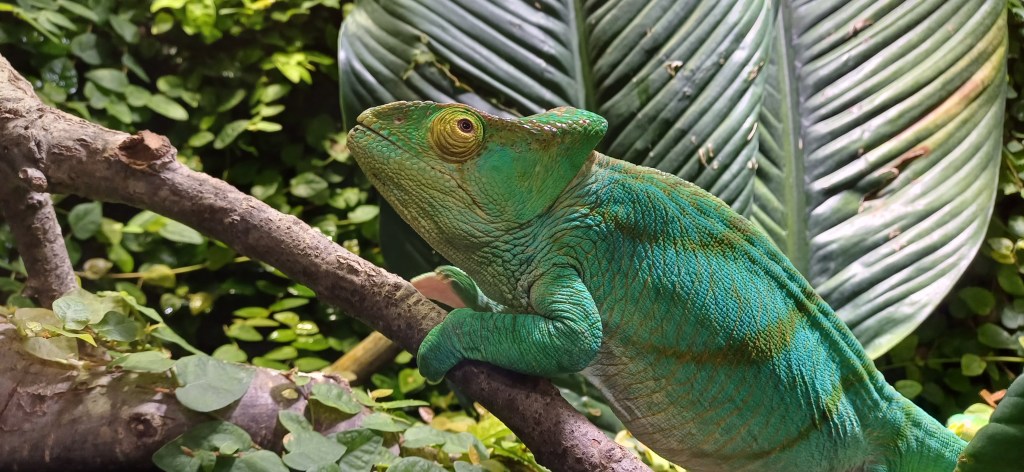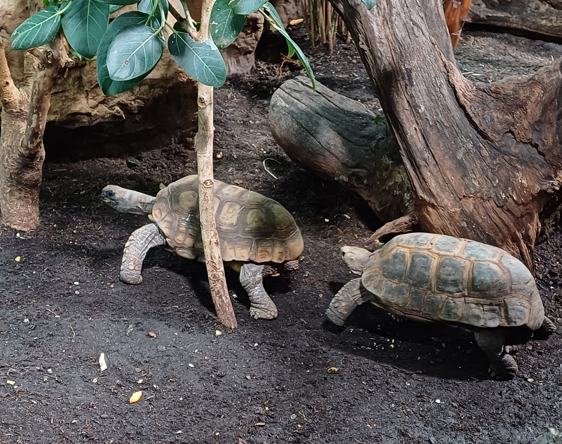 Insgesamt schien mir die Tierhaltung im wesentlichen artgerecht zu sein, einen Ansatz von Hospitalismus habe ich nur bei einer Echse gesehen. Außerdem schien mir die Einrichtung sehr engagiert in der internationalen Zusammenarbeit beim Tier- und Artenschutz zu sein, einerseits durch Nachzucht, andererseits durch Aufklärung. Gleichwohl gab es trotz der Appelle gegen Kunststoff im „Café Sharky“ Softdrinks und Wasser in Plastikflaschen im Automaten zu kaufen…