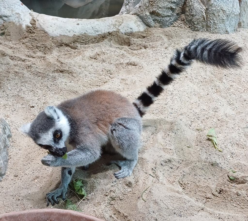 Danach machte ich mich daran, die Exponate zu besichtigen. Zunächst sah ich in der 10. Etage in einem Aquarium Hammerhaie, Rochen und andere Fische. Dann ging es weiter unten zu Habitaten von Kattas aus Madagaskar (eine Lemuren-Art, bekannt aus den animierten „Madagascar“-Filmen) und Kommodo-Waranen aus Australien. Die Lemuren waren recht aktiv, der Waran, den ich sah, eher sehr gechillt. Über die Warane lernte ich, dass die mal eben in einer Mahlzeit 80 kg ihres Eigengewichtes wegknabbern können. Auch sollen sie ziemlich intelligent sein. so sollen sie auf ihre Namen und ihnen zugewiesene Symbole reagieren und sogar zählen können. Irgendwie erinnerten mich die Viecher an die Velociraptoren aus „Jurassic Park“. Denen möchte ich nicht in freier Wildbahn begegnen, wenn die Hunger haben.