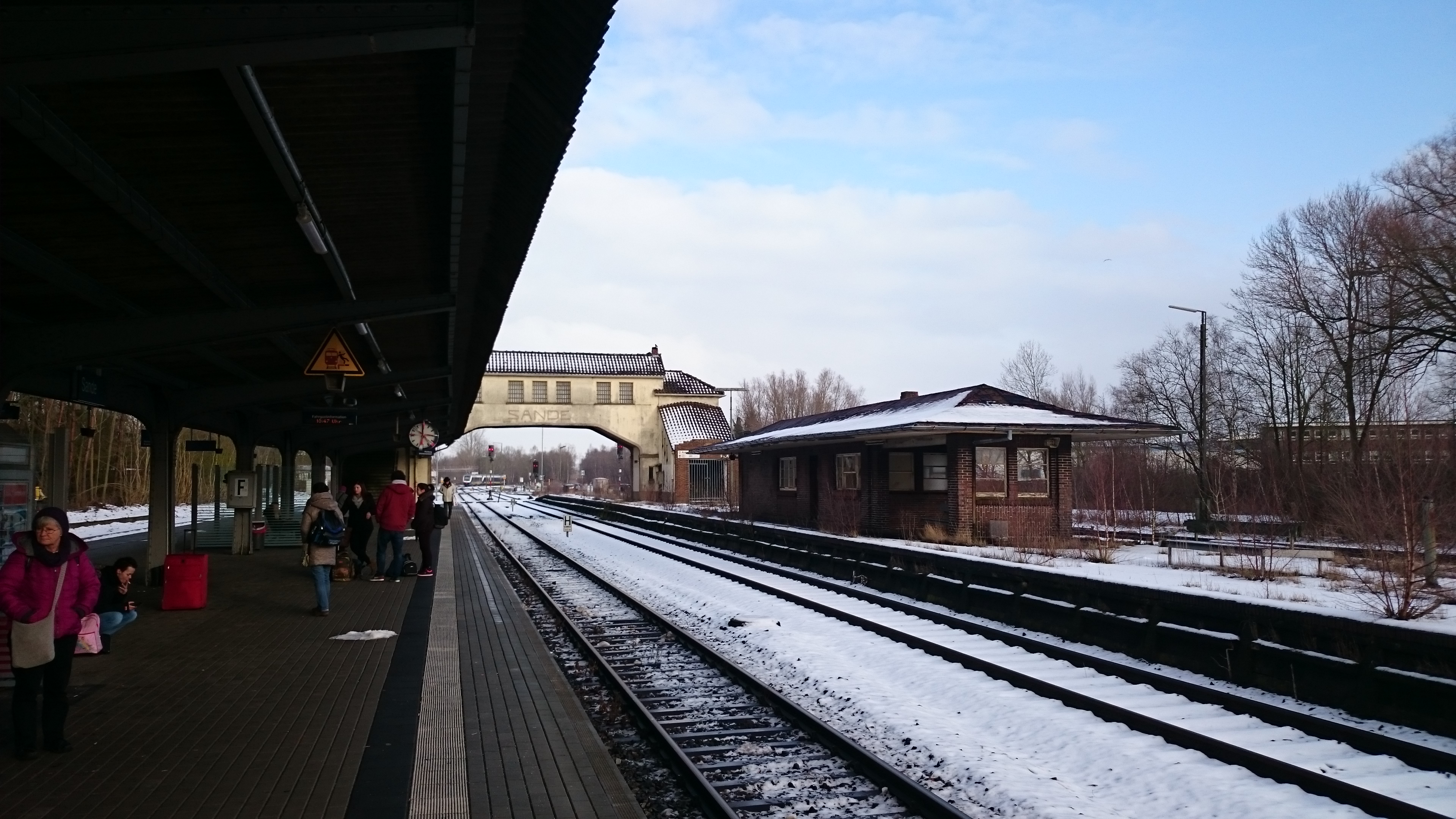 Viel Zeit hatte ich nicht mehr, es gab keinen Fahrkartenautomaten, und der Schalter hatte geschlossen. Ich überlegte, mich schnell noch bei der DB anzumelden und online ein Ticket mit dem Schlaufon zu kaufen. (Okay, war vielleicht auch keine gedankliche Glanzleistung, stattdessen das einzige, für mich erreichbare Ingress-Portal, nämlich den Bahnhof selbst, einzunehmen…) Wie auch immer, darum sollte ich mich für solche Fälle mal dringend kümmern. Aber akut war das kein Problem, weil man in der Nordwestbahn – im Gegensatz zum Metronom – Tickets lösen kann. Sogar bis HH-Dammtor über Oldenburg und Bremen.