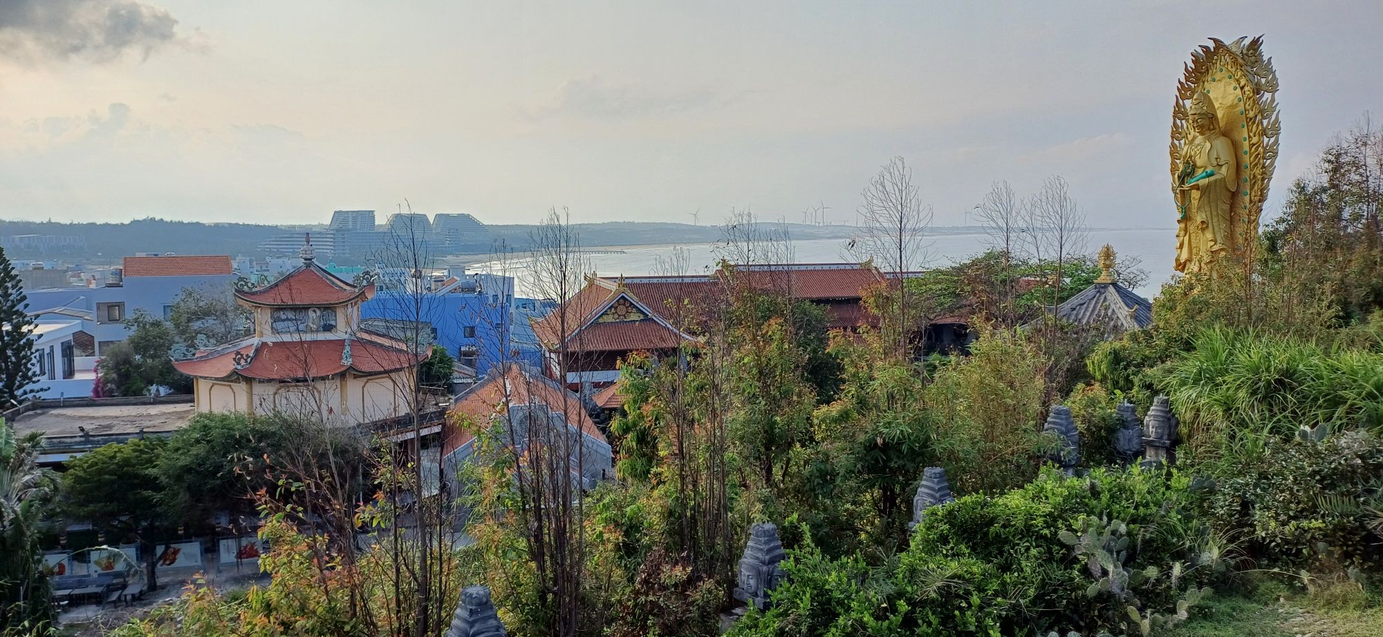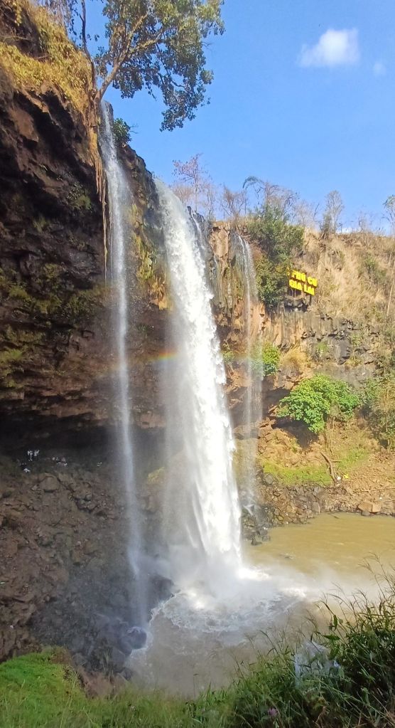 Wir nahmen noch den ältesten Bruder der Freundin meines Neffen, im Bus mit nach Kon Tum, außerdem dessen Sohn. Ich döste ein bisschen im Bus während der Fahrt. Nachdem wir bisher nur zum Tanken und fürs WC angehalten hatten, gab es einen Sightseeing-Stopp, auf denen die meisten nicht so richtig vorbereitet waren. Sowohl mein Schwager als auch die Freundin meines Neffens haben mit viel Arbeit und Liebe ein Programm mit Sehenswürdigkeiten ausgearbeitet und zur Verfügung gestellt. Da ich vorher so mit dieser Reise gefremdelt habe und auch andere Sachen im Kopf hatte, hab ich mir das im Detail nicht angesehen, sondern mich entschieden, alles auf mich zukommen zu lassen. Aber ehrlich gesagt, es sind auch so viele Orte mit fremden Namen und so viele Sightseeing-Punkte – das hätte ich sowieso nicht alles verstanden bzw. mir merken können.