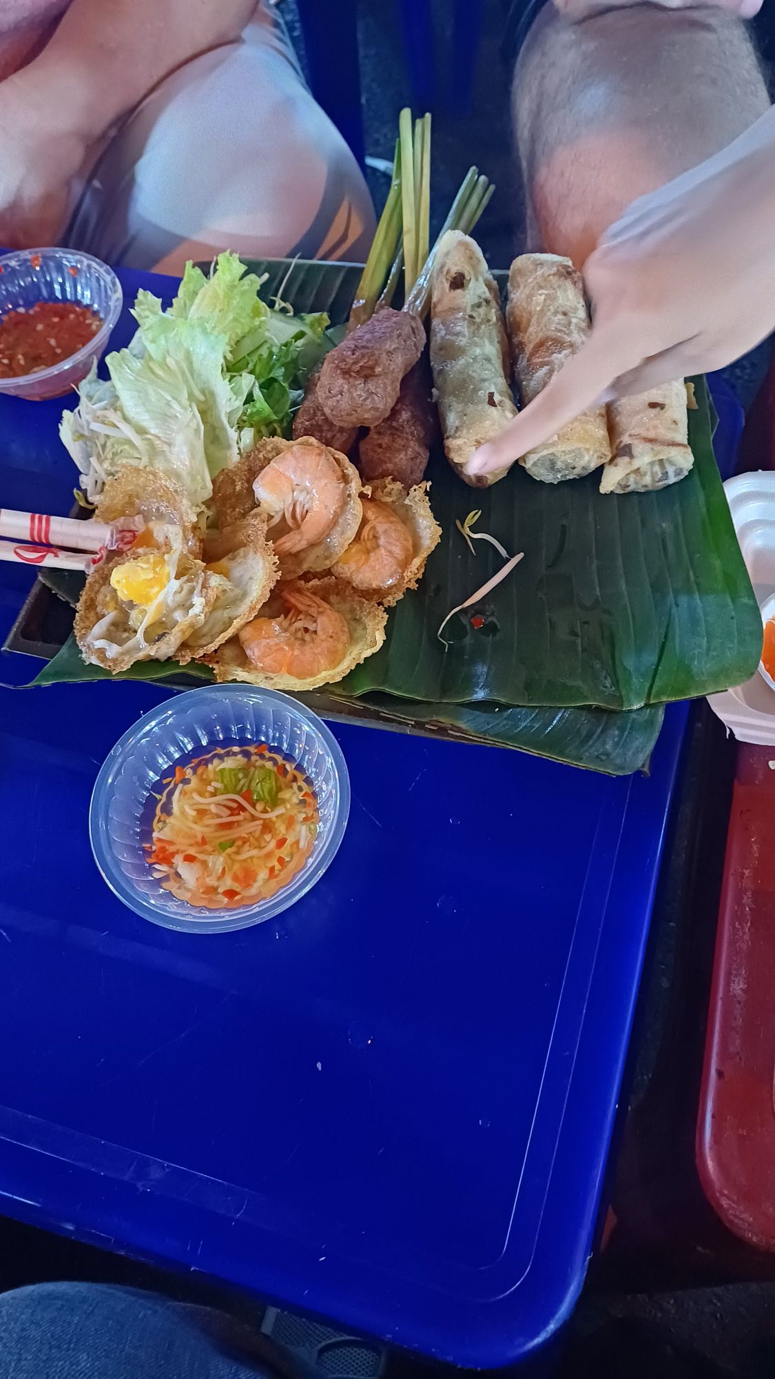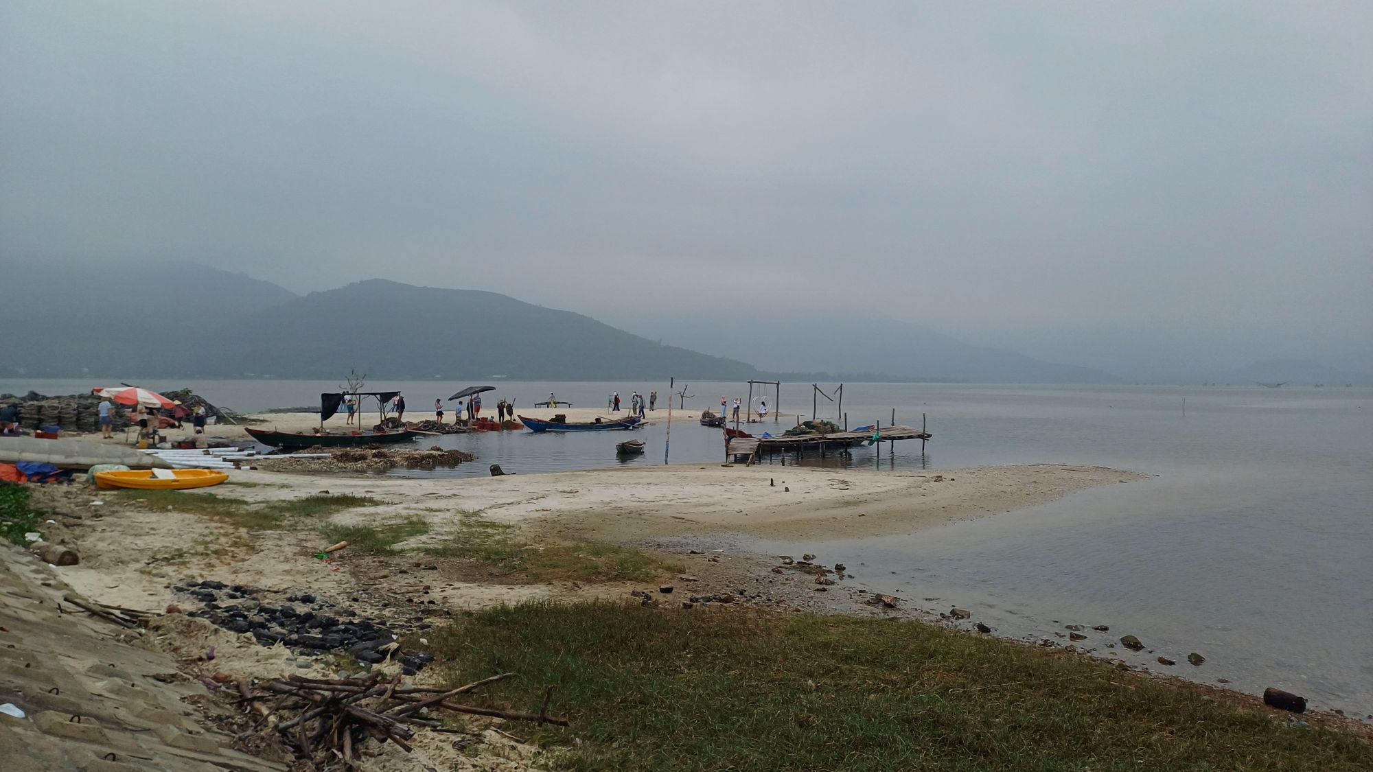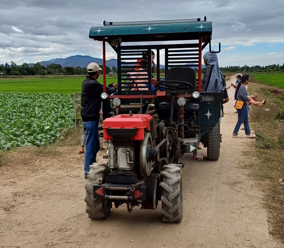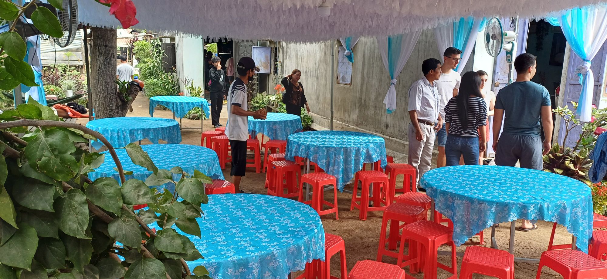 Wir hatten alle ausgecheckt und bezahlt und fuhren mit den Koffern wieder zum Haus der Eltern der Freundin meines Neffens. Hier hatte man gerade das Festzelt von der Party am Vortag wieder abgebaut und war noch dabei, Plastikstühle auf ein landwirtschaftliches Fahrzeug zu verladen. Danach gab es vietnamesisches Frühstück mit Suppe, Reis, hartgekochten Eiern, verschiedenen Fleisch- und Gemüsesorten… Ich mag das ja ganz gerne, aber irgendwie gibt es das scheinbar zu jeder Mahlzeit, und jeden Tag. So kommt es mir jedenfalls vor. Wirklich viel Abwechslung ist da nicht am Start. Vielleicht bin ich einfach zu sehr verwöhnter West-Europäer.