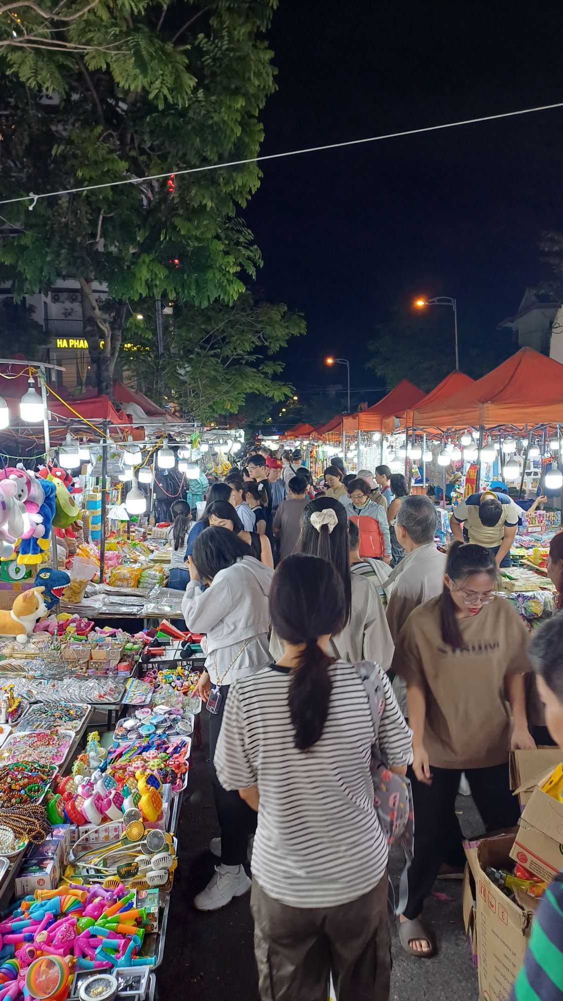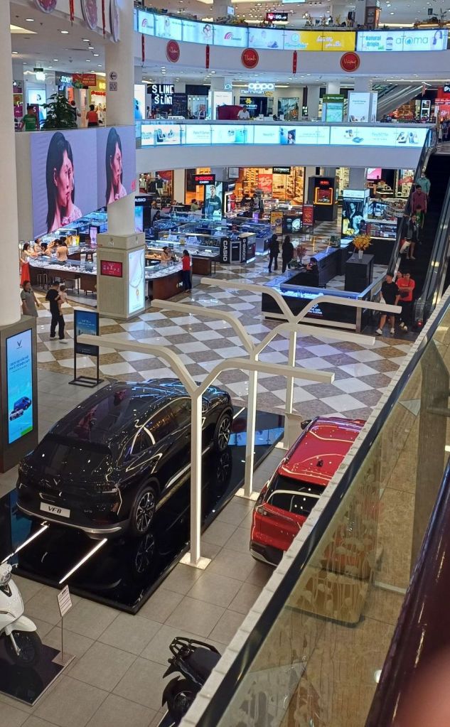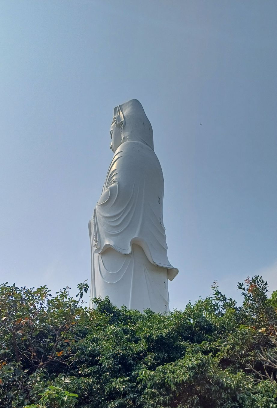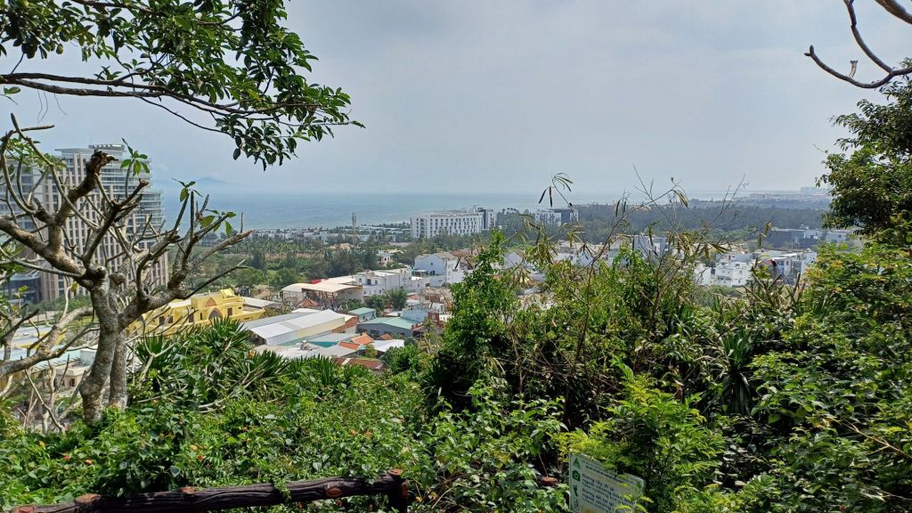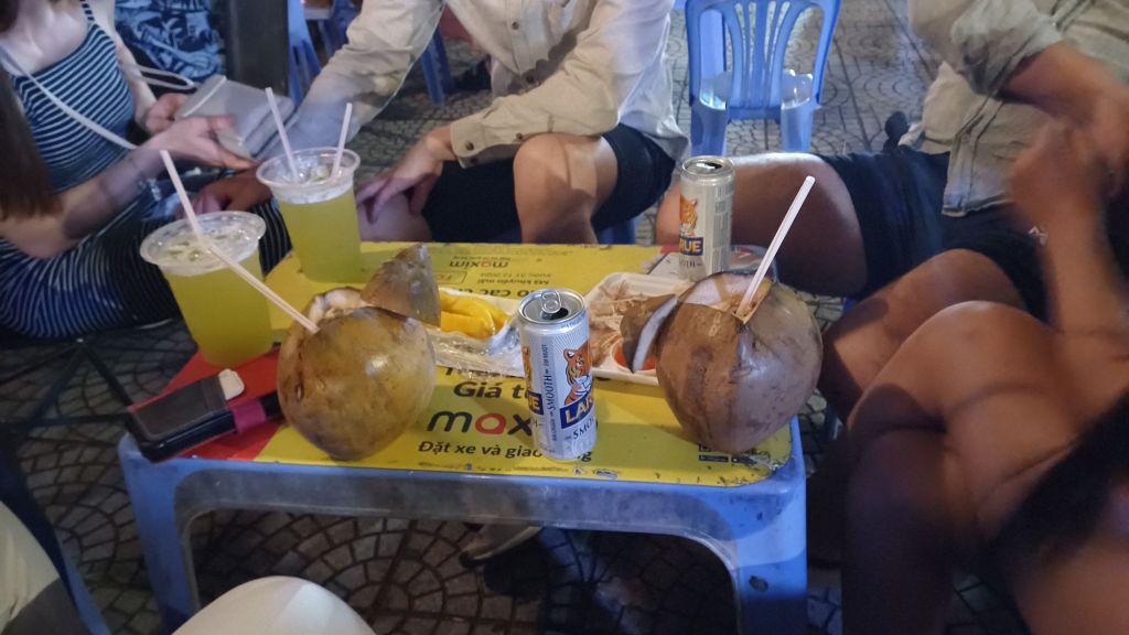 Hier ging es um einen berühmten Wasserfall, der zu besichtigen war. Dazu mussten wir eine steile Treppe herunter- und hinterher wieder raufklettern. Es waren unheimlich viele andere Leute unterwegs, die meisten offenbar Vietnamesen. Es war alles total voll. Der Wasserfall war recht schön und eindrucksvoll, aber der Platz davor extrem zugemüllt mit Plastikflaschen und Bierdosen und halt dem Zeug, was man so auf einen Ausflug mitnimmt und dann achtlos in die Natur schmeißt. Das hat mir, neben dem Gedränge und den Massen an Selfies schießenden Leuten die Sache ziemlich verdorben. Es gab die üblichen Möglichkeiten, an unterdimensionierten Plastiktischen auf Kindergartenstühlen zu sitzen und Kokosnüsse oder Zuckerrohrsaft zu trinken oder frisches Obst zu essen, das vor Ort verkauft wurde. Ich wollte eigentlich nichts, aber der älteste Bruder der Freundin meines Neffen gab mir einen Zuckerrohrsaft aus. Ich mag Zuckerrohrsaft, aber unsere Plastikbecher und -strohhalme landeten (mangels einem Müllcontainer) dann wohl am Ende auch auf der allgemeinen Müllhalte mitten in der einst schönen Natur. Am Ausgang des Geländes sahen wir noch ein Schild, man solle seinen Müll nicht wegwerfen. Da hielt sich nur keiner dran. Man könnte ja seinen Müll auch einfach wieder mitnehmen, oder man könnte Abfalleimer, deren Inhalt entsorgt wird, aufstellen. Aber so weit ist man hier wohl noch nicht, weder von der Eigenverantwortung, noch von der Seite des Staates aus.