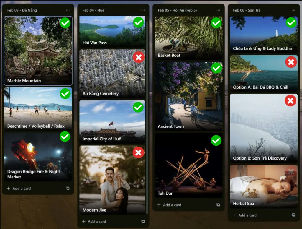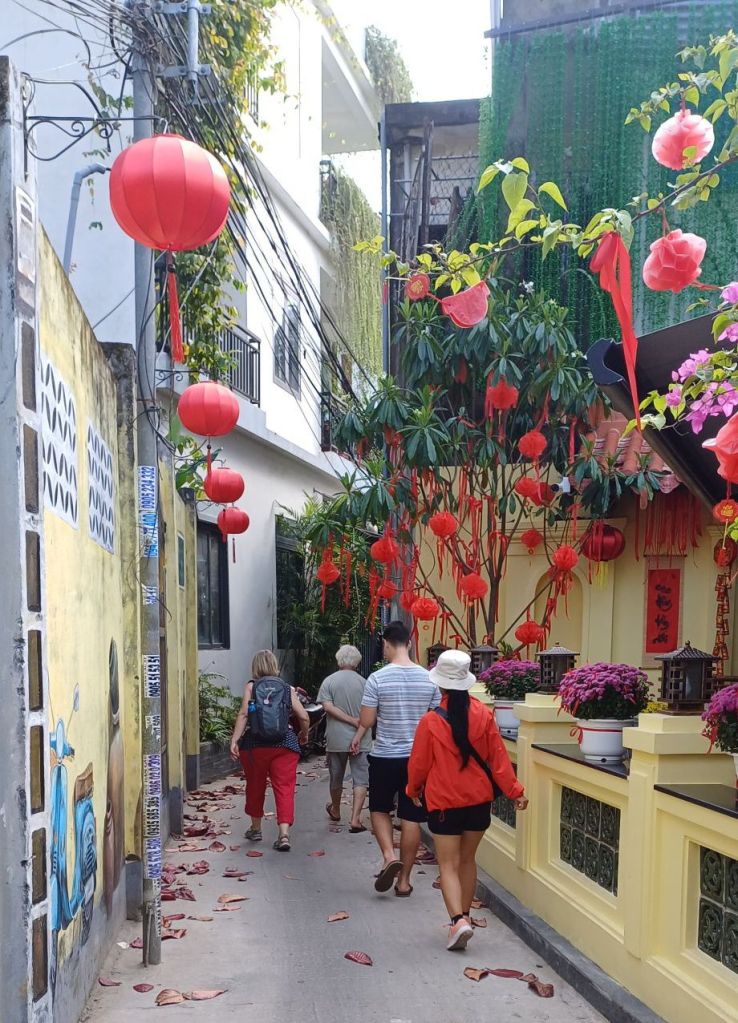 Vorher steht noch Frühstück und Sightseeing hier in der Nähe auf dem Programm. Es gibt eine alte Holzbrücke noch aus der Zeit der französischen Kolonialherrschaft und eine ganz aus Holz gebaute Kirche, beides soll sehenswert sein. Ich weiß noch nicht. was ich morgen davon noch mitnehmen werde. Nach dem Besuch im Haus des Bruders geht es dann auf längere Autofahrt zurück nach Da Nang (ohne Pausen etwa sechs Stunden). Alleine deswegen hoffe ich, dass das Programm vorher nicht zu lange dauert. In Da Nang haben wir dann alle wieder ein bisschen mehr individuell Zeit für uns. Allerdings bleiben wir nur drei Nächte, d.h. nur einen ganzen Tag, umrahmt von Anreise- und Abreisetag.