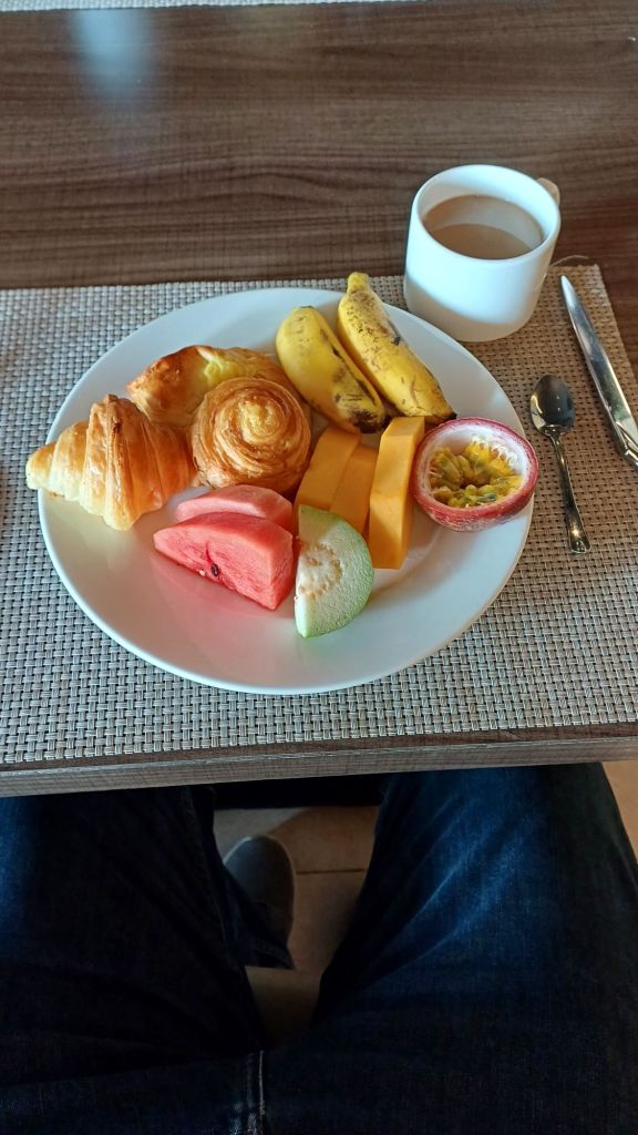 Heute morgen, nachdem ich nach dem Schreiben des vorigen Blog-Eintrags noch ein bisschen gedöst/geschlafen habe, war ich um 09.30 Uhr mit gepackten Taschen am Start an der Rezeption. Ich hatte nicht mitbekommen, dass das auf 10.00 Uhr geschoben war, meine Familie war noch ein einem protestantischen Jarai-Gottesdienst und kam erst später zurück. Es blieb noch Zeit für einen Kaffee am Hotel.