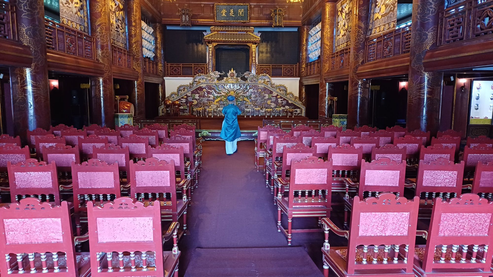 Später konnte ich mich auf einen angenehmen Liegestuhl setzen, auf dem ich schmerzfrei sitzen konnte, und die Karaoke-Anlage wurde angeschmissen. Das weckte ein bisschen die Rampensau in mir. Mein Neffe machte mit „Hotel California“ den Anfang, meine Schwester sag „Aux Champs Elysees“ und „Happy New Year“. Ich sang „Wonderful Tonight“, dann noch „Teddy Bear“ und „Jailhouse Rock“ von Elvis. Zwei der jungen Vietnamesinnen sagen jeweils einen vietnamesischen Song. Ich fing gerade an, mich einigermaßen wohl zu fühlen, da hieß es, Aufbruch in 10 Minuten. Der Bus stand schon früher bereit.