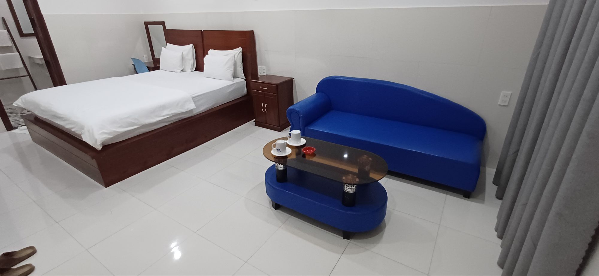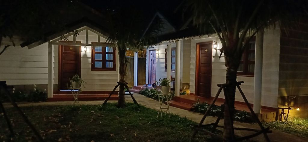 Ich war eher froh, wieder unterwegs zu sein. Irgendwann kamen wir in Kon Tum im Hotel an. Das ist eine sehr schön angelegte Anlage aus einzelnen kleinen Häuschen, in denen die Zimmer sind. Dazwischen gibt es Pflanzenbeete und schön gestaltete Wege. Auch die Beleuchtung ist gut gemacht, nicht nur die hier oft (z.B. auf den Nachtmärkten) anzutreffenden Lampen, die helles, kaltweißes Licht absondern und nicht gerade Gemütlichkeit schaffen, sondern auch viel eher gelbliches, wärmeres Licht. Vielleicht tut auch dieses kaltweiße Licht, welches es auch in allen Hotelzimmern (außer im Haian Beach, aber auch hier im Zimmer der von außen sehr schönen Anlage) gegeben hat, auch etwas dazu, dass ich etwas aggro bin.