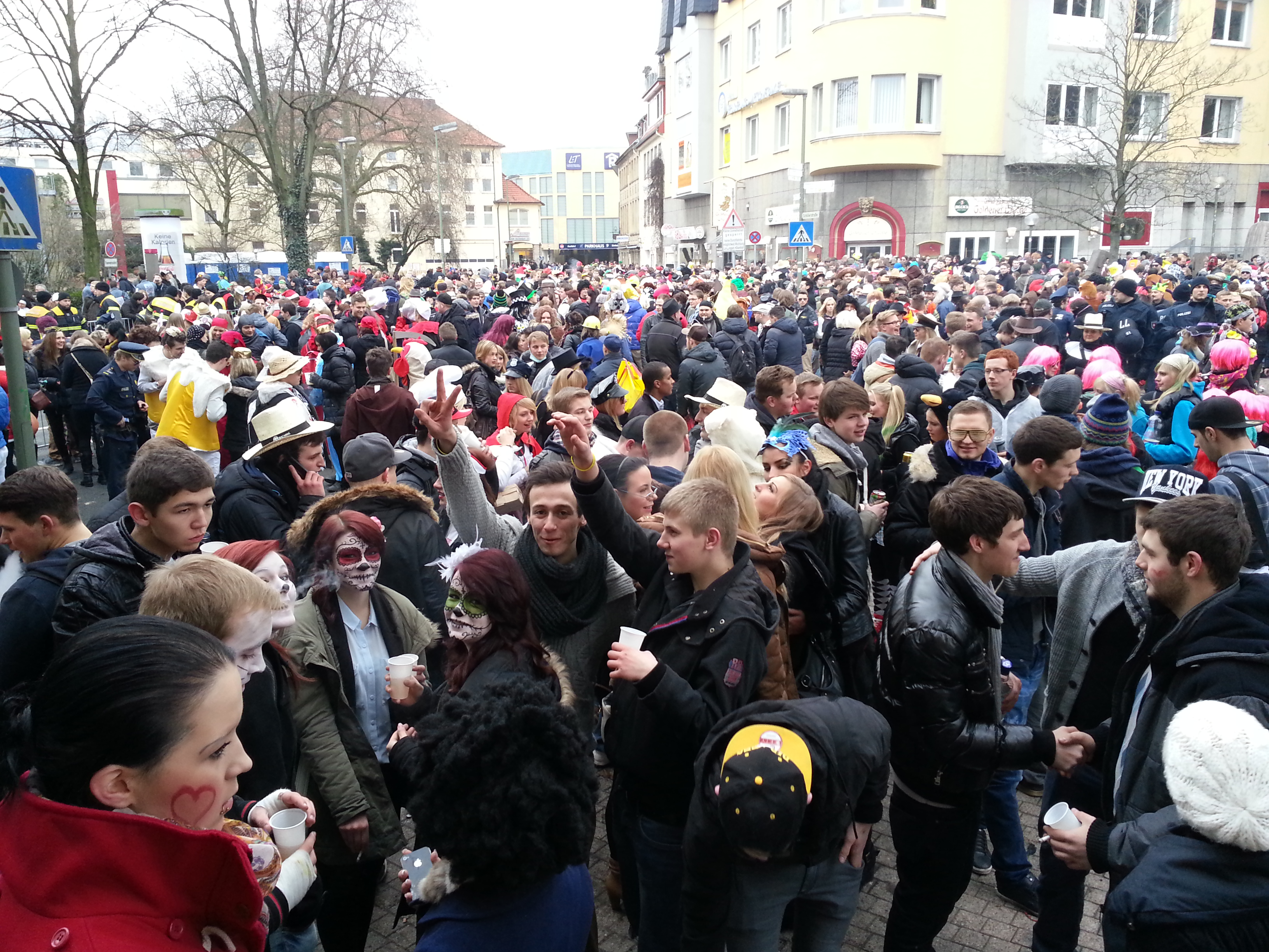 Zuletzt wurde noch ein Fürbittengebet für das Brautpaar an das Monster gerichtet (allerdings sagte „Bruder Spaghettus“ voher noch „Wer einen anderen Gott hat, der nimmt einfach den“). Das tat ich dann natürlich auch und wollte eigentlich meine eigenen Gedanken formulieren, aber das viel mir schwer, ich glaube aber, es war schon okay, die guten Wünsche „Bruder Spaghettus'“ an meinen Gott zu forwarden. Eine gemeinsame Freundin erzählte mir hinterher, ihr wäre eher danach gewesen, sich bei ihrem Gott (der derselbe wie meiner ist) zu entschuldigen, dass man an der bizarren Nudelhochzeit so teilgenommen hätte. Auch das kann ich durchaus nachvollziehen. Schließlich wurde in umgekehrter Reihenfolge dann wieder ausgezogen. Geschafft, die Party konnte beginnen.