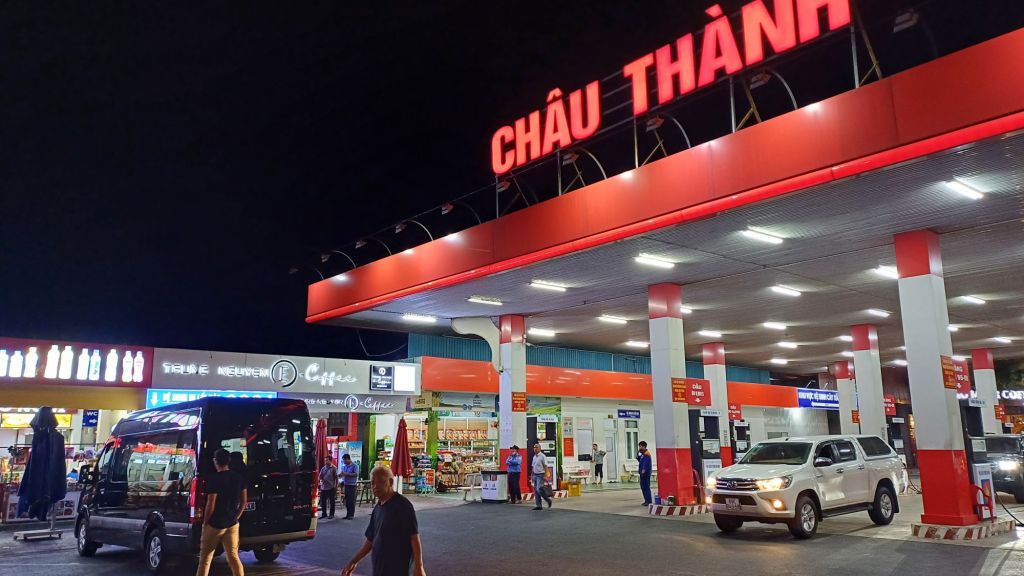 Irgendwann waren wir aus der Innenstadt heraus und dann erst auf einer Schnellstraße, dann auf einer Autobahn (CT01) unterwegs. Hier machten wir Rast. Es war schon vergleichbar mit einer Raststätte, wie man sie an den Autobahnen europäischer Länder kennt, Tankstelle, Parkplätze, Toiletten, Gastronomie und Einkaufsmöglichkeiten, aber natürlich doch auch anders, vietnamesisch Eben.