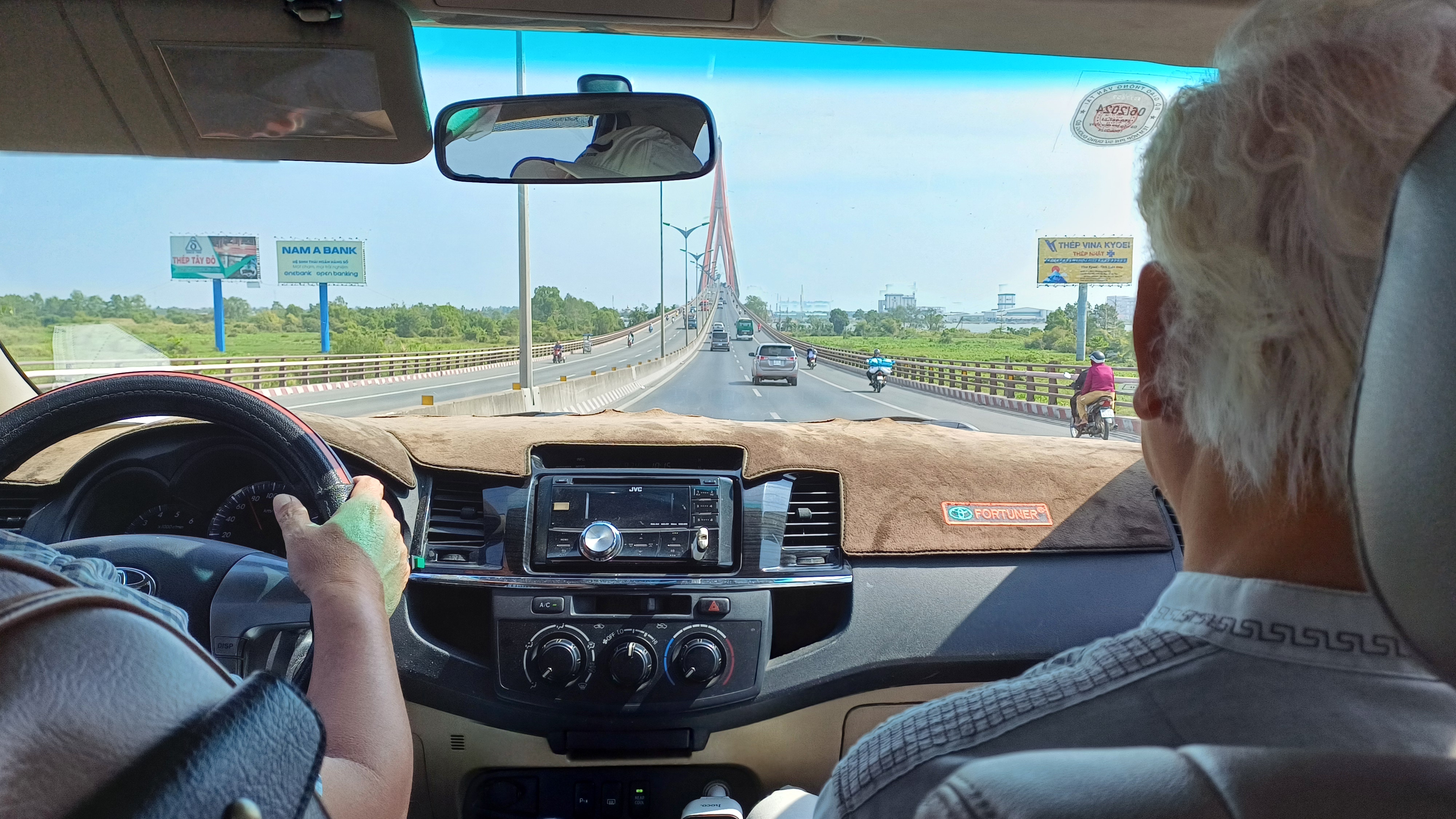 Nach der Mahlzeit setzten wir unsere Fahrt auf der CT01 fort. Es war kurz nach 20.00 Uhr, lt. Google Maps sollte die Fahrt wohl so um weitere, knapp zwei Stunden dauern. Ich versuchte, zwischenzeitlich ein wenig zu schlafen. Irgendwann überquerten wir, teilweise auf großen, noch recht neuen Brücken, auf die mein Schwager enthusiastisch hinwies, den Mekong und diverse Nebenarme. Dann war die Fahrt nicht mehr weit.