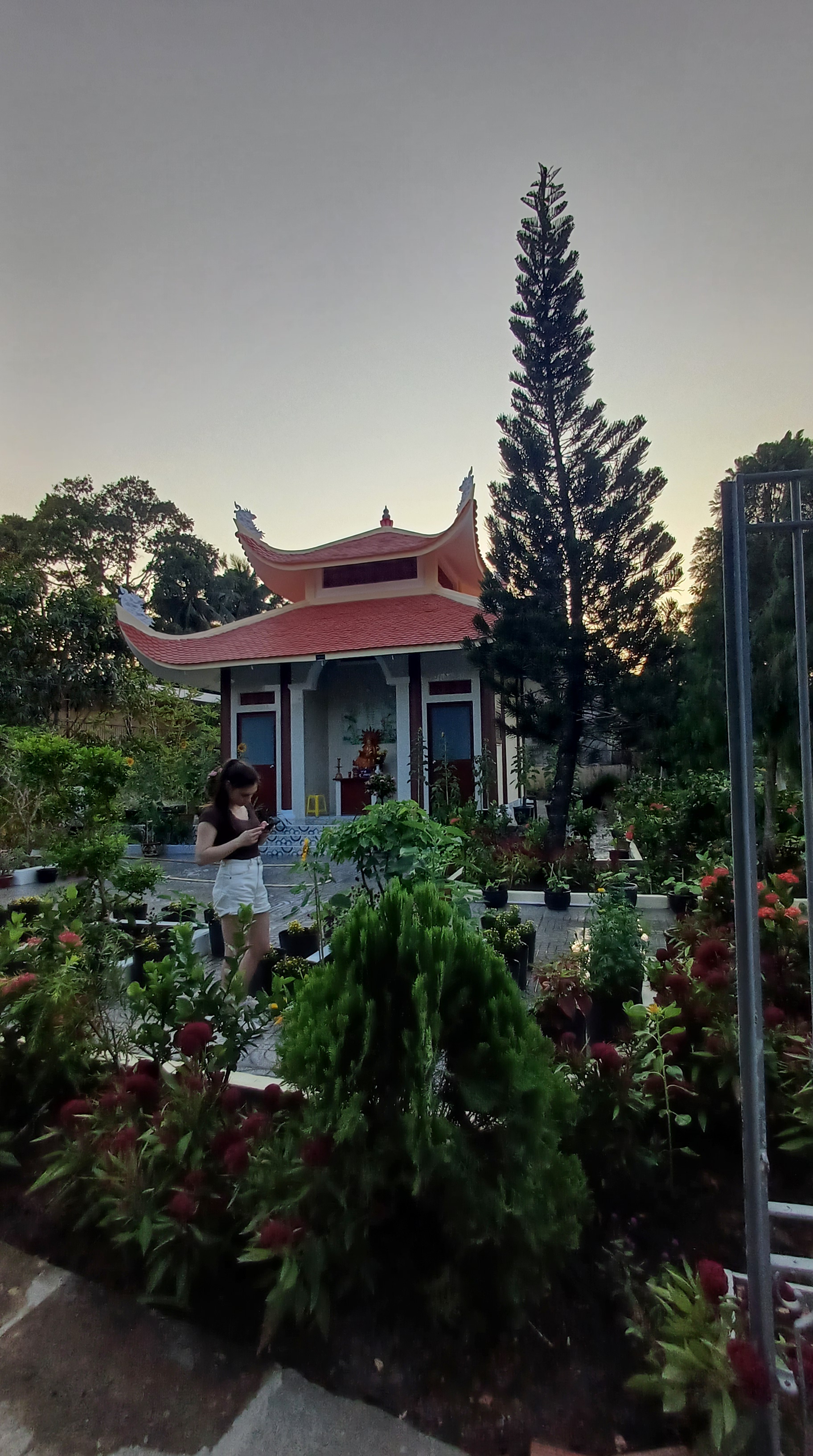 Nachdem wir auch dieses Haus besuchte hatten, gingen wir wieder zum Auto zurück. Das heisst, mein Schwager ließ sich von einem Nachbarn auf seiner Honda (so wird hier gerne ein Moped egal welcher Marke genannt, wenn ich das richtig verstanden habe) mitnehmen, so zum Spaß. Auf dem Rückweg machten wir in Can Tho noch an einer speziellen Pagode halt. Gestern hatten wir das Haus der Ahnen meines Schwagers mütterlicherseits besucht, heute das von der Seite seines Vaters. Im sauber manikürten Garten der Pagode, die wir besuchten, waren die Urnen beider Eltern meines Schwagers untergebracht. Das Gelände dient als Ruhestätte und Ort der Erinnerung für Anghörige verschiedener Familien, die den Ort mit ehrenamtlicher Arbeit und Spenden von Besuchern erhalten.